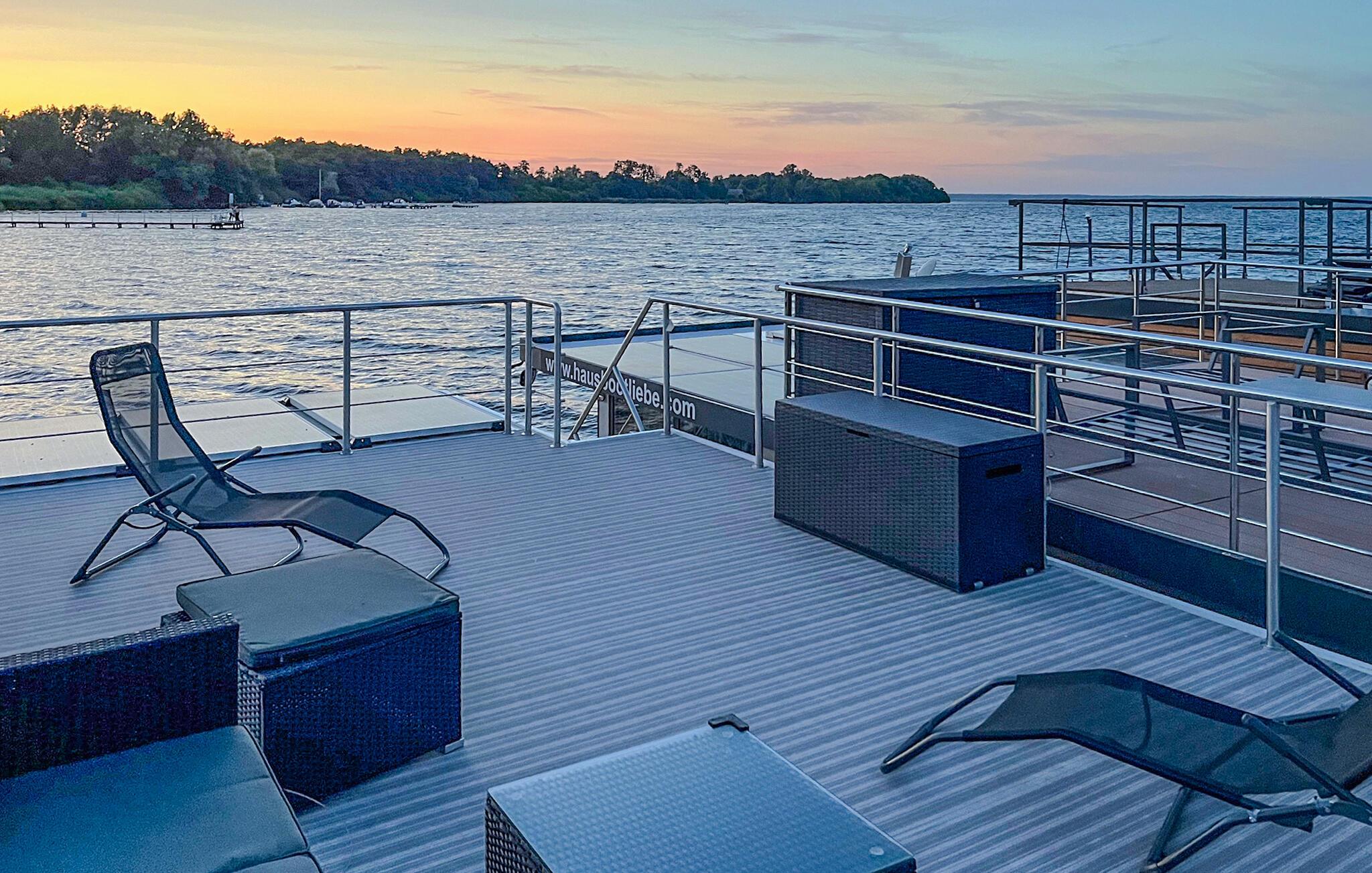 La deg fortrylle av innsjøpanoramaet på denne attraktive husbåten.