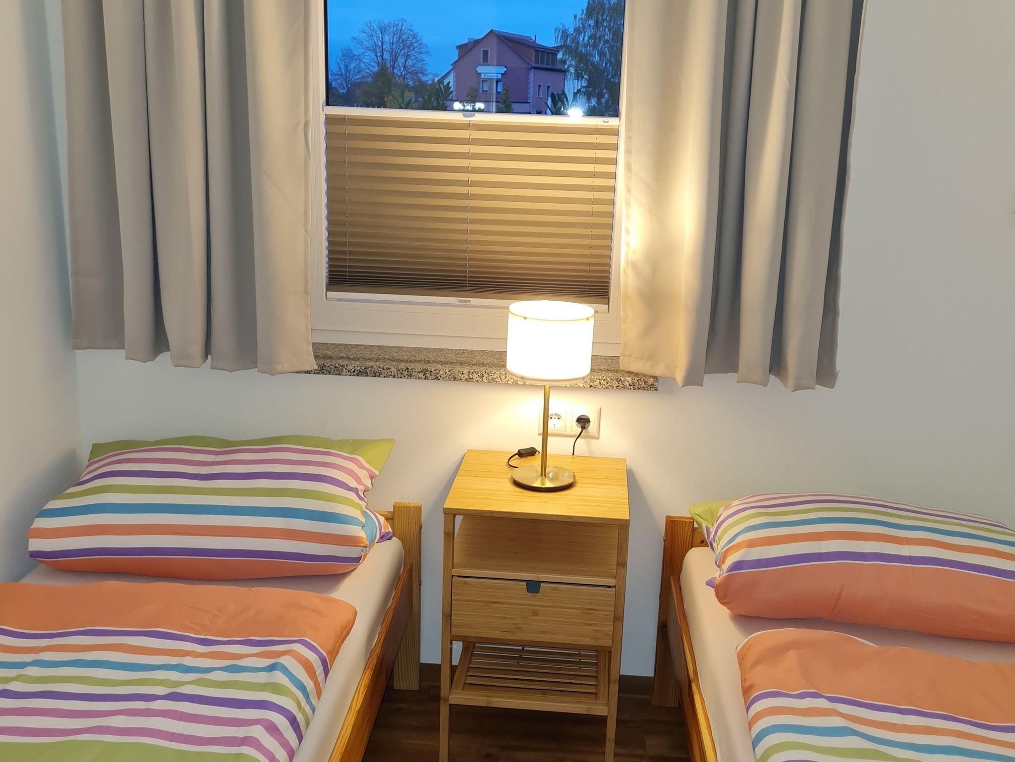 Das große Schlafzimmer verwöhnt Sie mit einem hochwertigen Boxspringbett (180 × 200) für erholsame Nächte, während das zweite Schlafzimmer mit zwei Einzelbetten ideal für Kinder oder weitere Gäste geeignet ist.