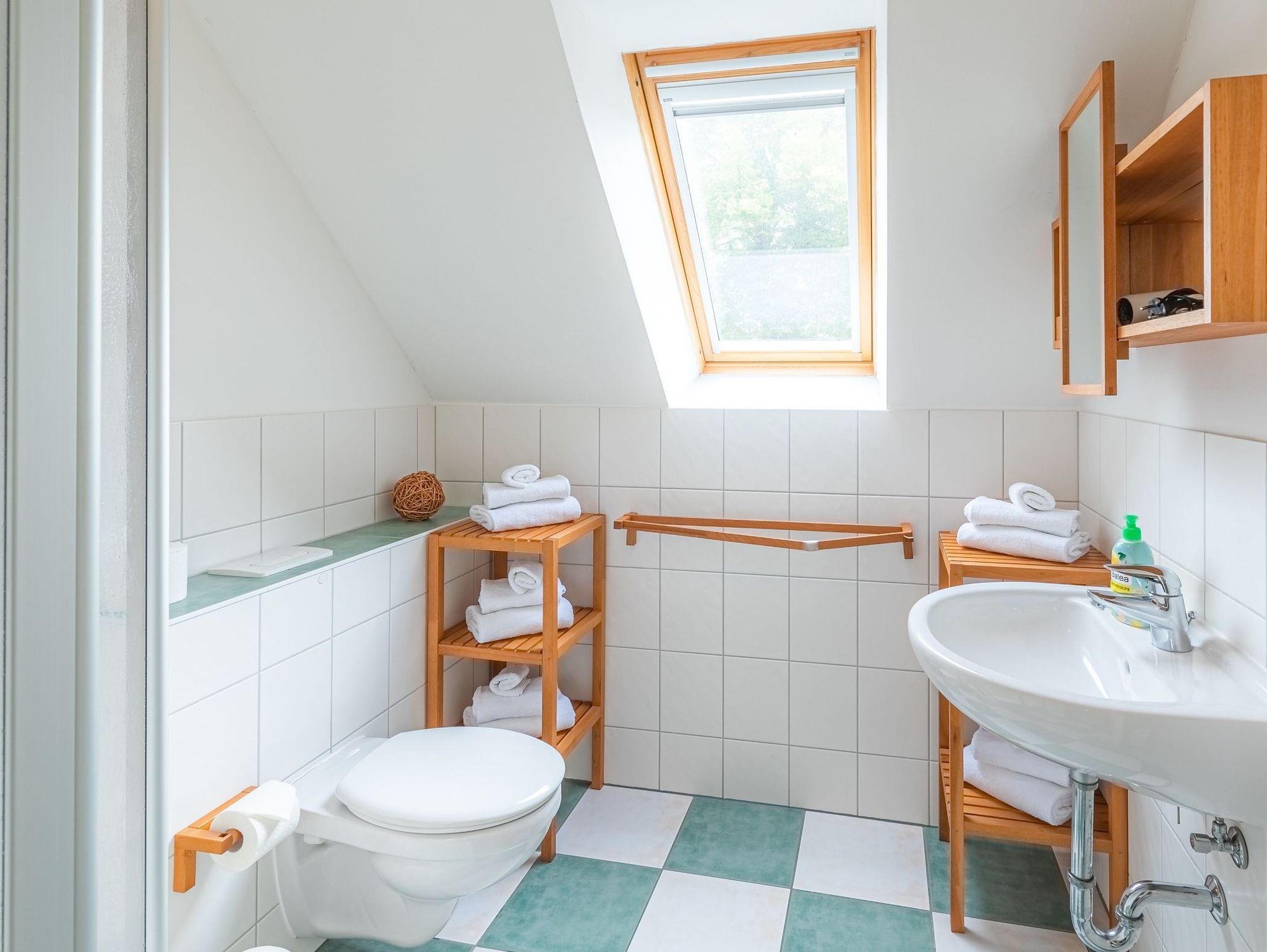 Im Erdgeschoss befindet sich neben dem Eingangsbereich mit Garderobe ein Gäste-WC. Im lichtdurchfluteten Wohnraum stehen ein Essplatz mit großem Tisch sowie ein gemütliches Ecksofa zur Verfügung. Außerdem gibt es einen Fernseher mit SAT-Empfang sowie ein Radio mit CD-Spieler. Die offene Küche ist neben einem Cerankochfeld und Backofen mit einem Geschirrspüler, einem großen Kühlschrank sowie einem separaten Gefrierfach ausgestattet. Außerdem finden Sie alle notwendigen Küchengeräte wie Toaster, Kaffeemaschine und Wasserkocher. Geschirr und Besteck ist in ausreichender Anzahl vorhanden.