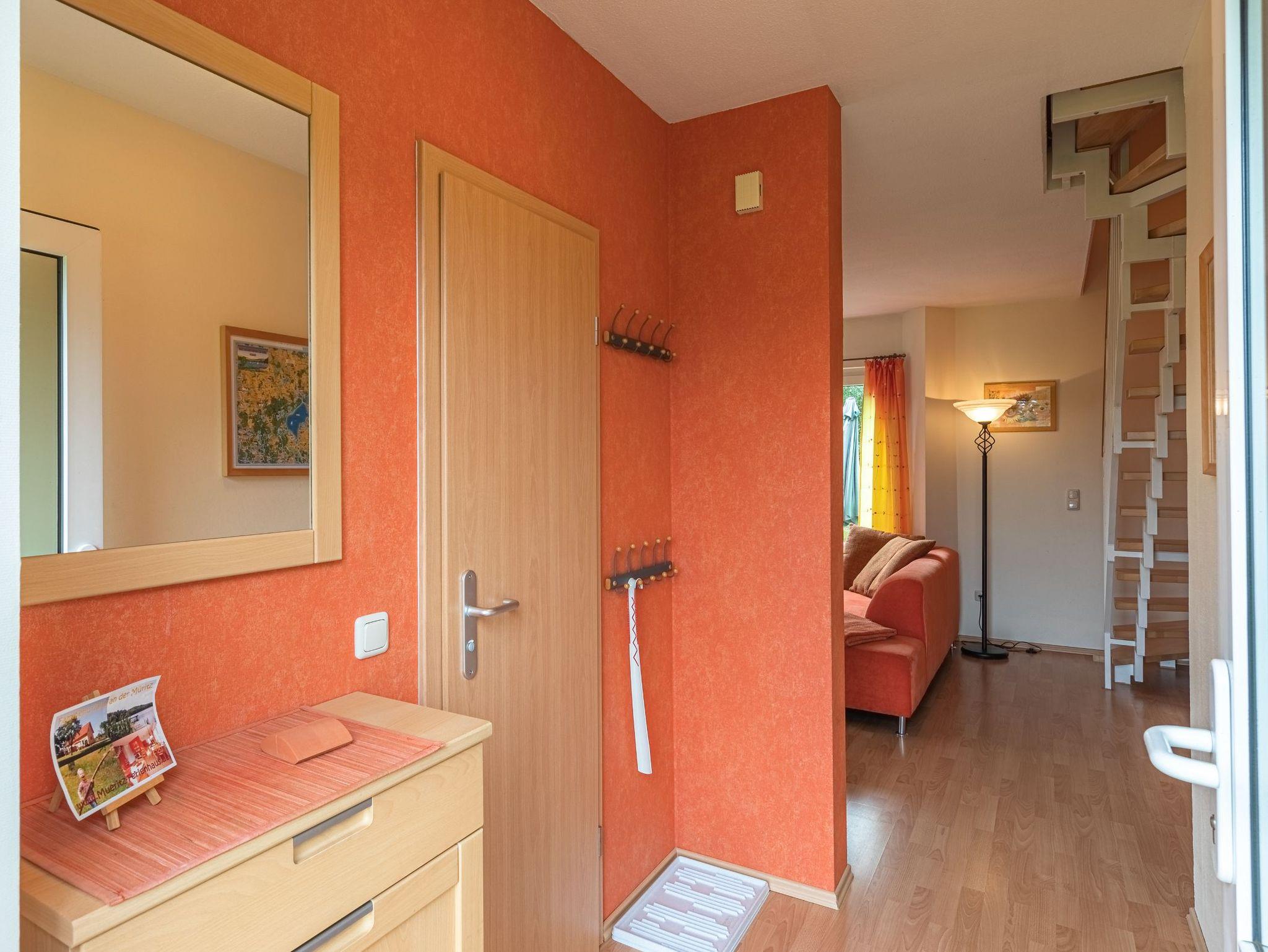 Das freistehende Ferienhaus an der Müritz mit drei Schlafzimmern verfügt über 70 m² auf zwei Etagen und ist in warmen Orange-Tönen gehalten. Mit drei Schlafzimmern bietet es Platz für bis zu sechs Personen und ist so wunderbar für einen Familienurlaub mit Kindern oder einen Urlaub mit Freunden geeignet.