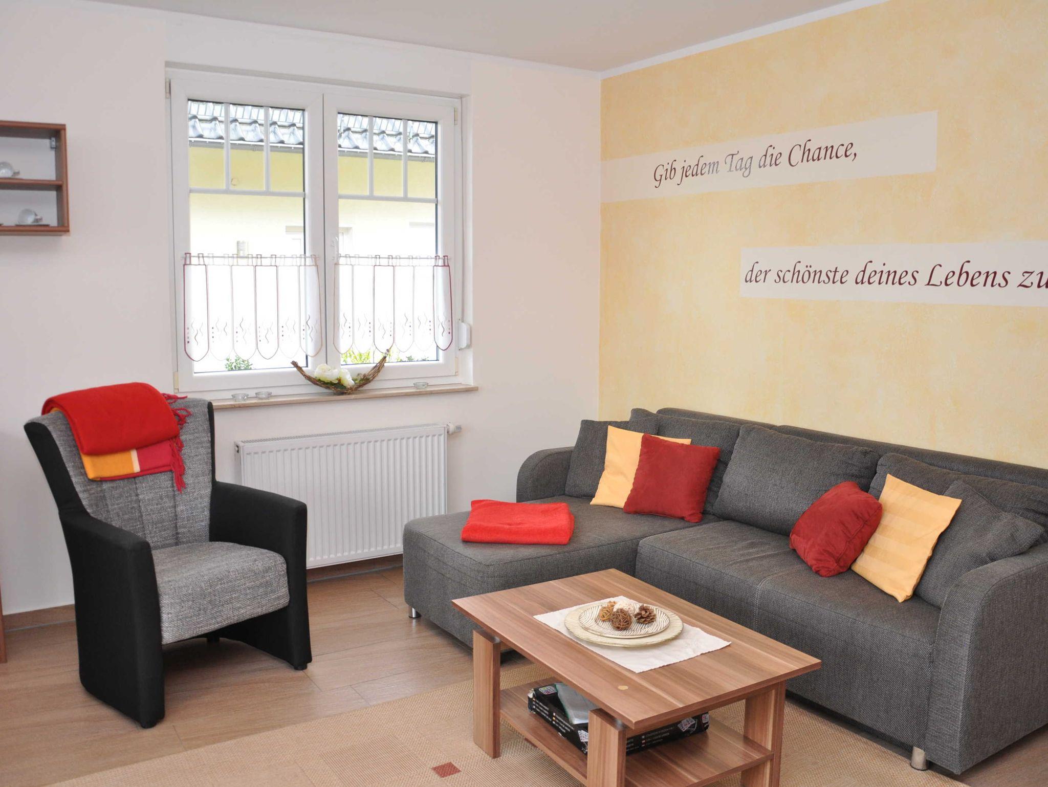 Eine Aufbettungsmöglichkeit besteht im Wohnzimmer. Die Couch verfügt über eine Schlaffunktion. Darüber hinaus verfügt das EG-Appartement über 1 Bad mit Dusche sowie einer Infrarot-Sauna und Kamin, kostenfreien WLAN, Wohn- /Essbereich mit vollwertiger Einbauküche mit Spülmaschine, Kühl-/Gefrierfunktion, Ceranherd und Mikrowelle stehen ebenfalls zur Verfügung.