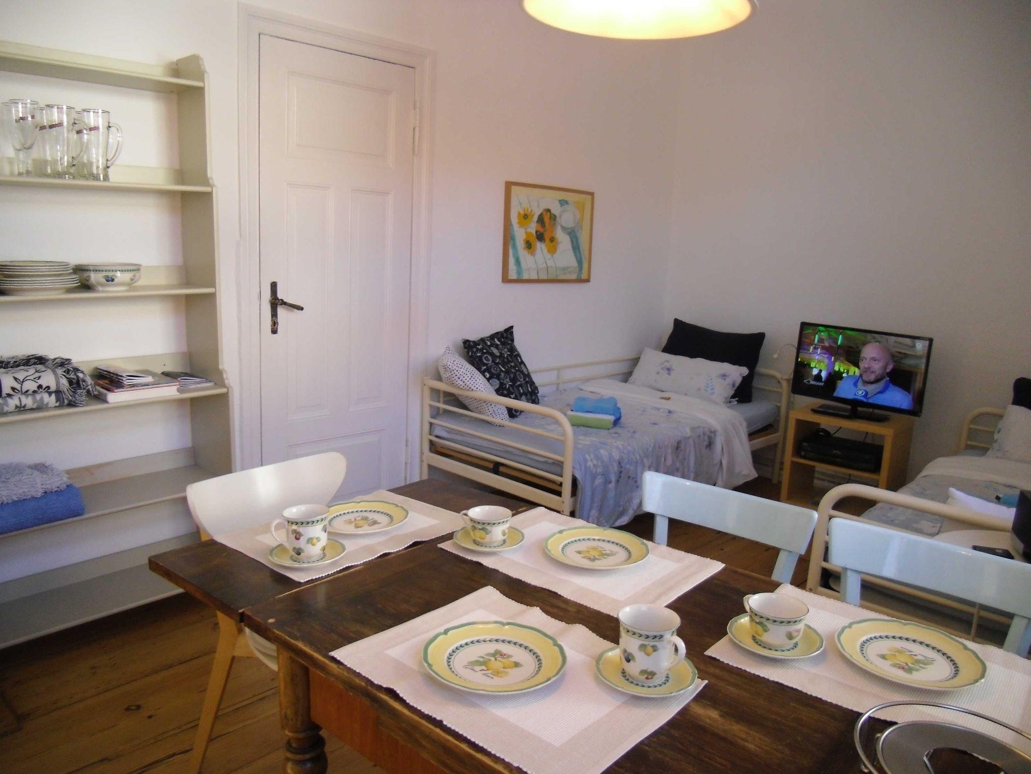 Die Ferienwohnung befindet sich im Obergeschoss eines historischen Altbaus. Sie ist ausgestattet mit einem Schlafzimmer, Bad mit Dusche, Küche und Wohnbereich. Der kleine Innenhof lädt zum Verweilen ein. Hier kann bei gutem Wetter unter anderem auch gegrillt werden. Im Hof gibt es unter anderem auch Unterstellmöglichkeiten für Fahrräder. Das Haus befindet sich in unmittelbarer Nähe zum Hafen, sowie zur nächsten Bushaltestelle.