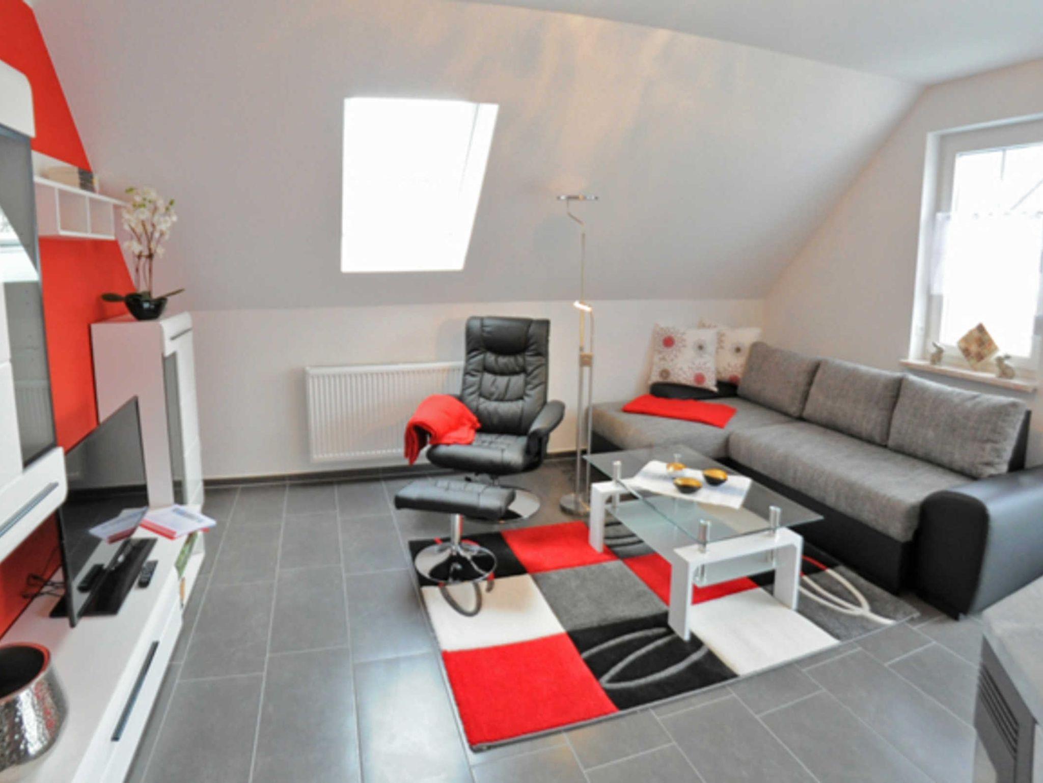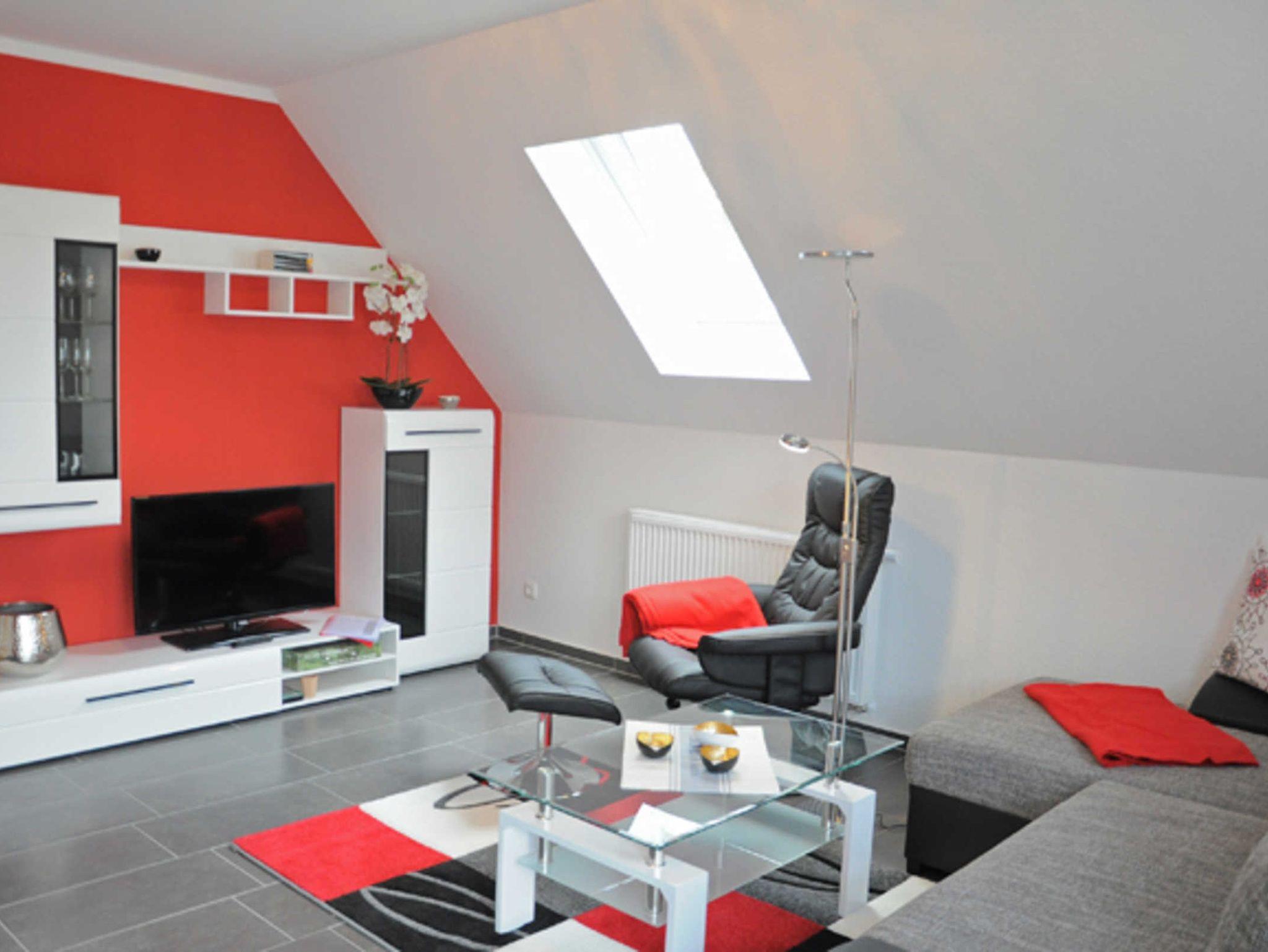 Eine Aufbettungsmöglichkeit besteht im Wohnzimmer. Die Couch verfügt über eine Schlaffunktion. Darüber hinaus verfügt das EG-Appartement über 1 Bad mit Dusche sowie Kamin, kostenfreien WLAN, Wohn- /Essbereich mit vollwertiger Einbauküche mit Spülmaschine, Kühl-/Gefrierfunktion, Ceranherd und Mikrowelle steht ebenfalls zur Verfügung.