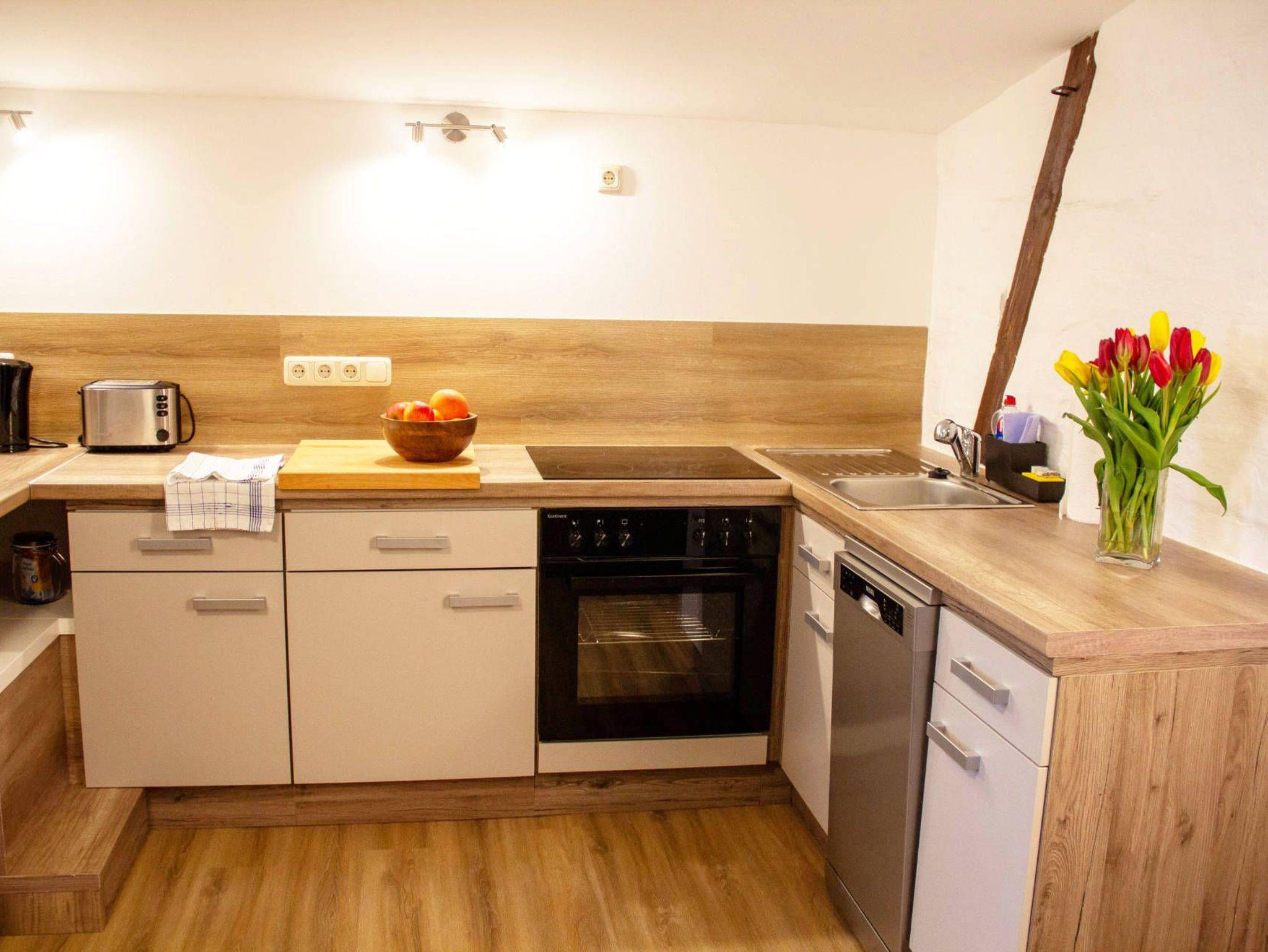 In der ehemaligen Knecht-Kammer entstand ein neues und modernes Familienappartement für 4 Personen. Die Ferienwohnung befindet sich im Obergeschoss des Hauses mit zwei separate Schlafzimmern zum ruhige Garten hin. Das großes Wellness Bad besitzt als Highlight eine Erlebnisdusche. Im Wohnzimmer befindet sich eine gemütliche Lounge Ecke mit SAT TV und Kamin sowie freies WLAN. In der seperaten Küche befindet sich eine große Essecke mit moderner Einbauküche. Diese Ferienwohnung bietet Ihnen viel Platz für Freunde und Familie.
