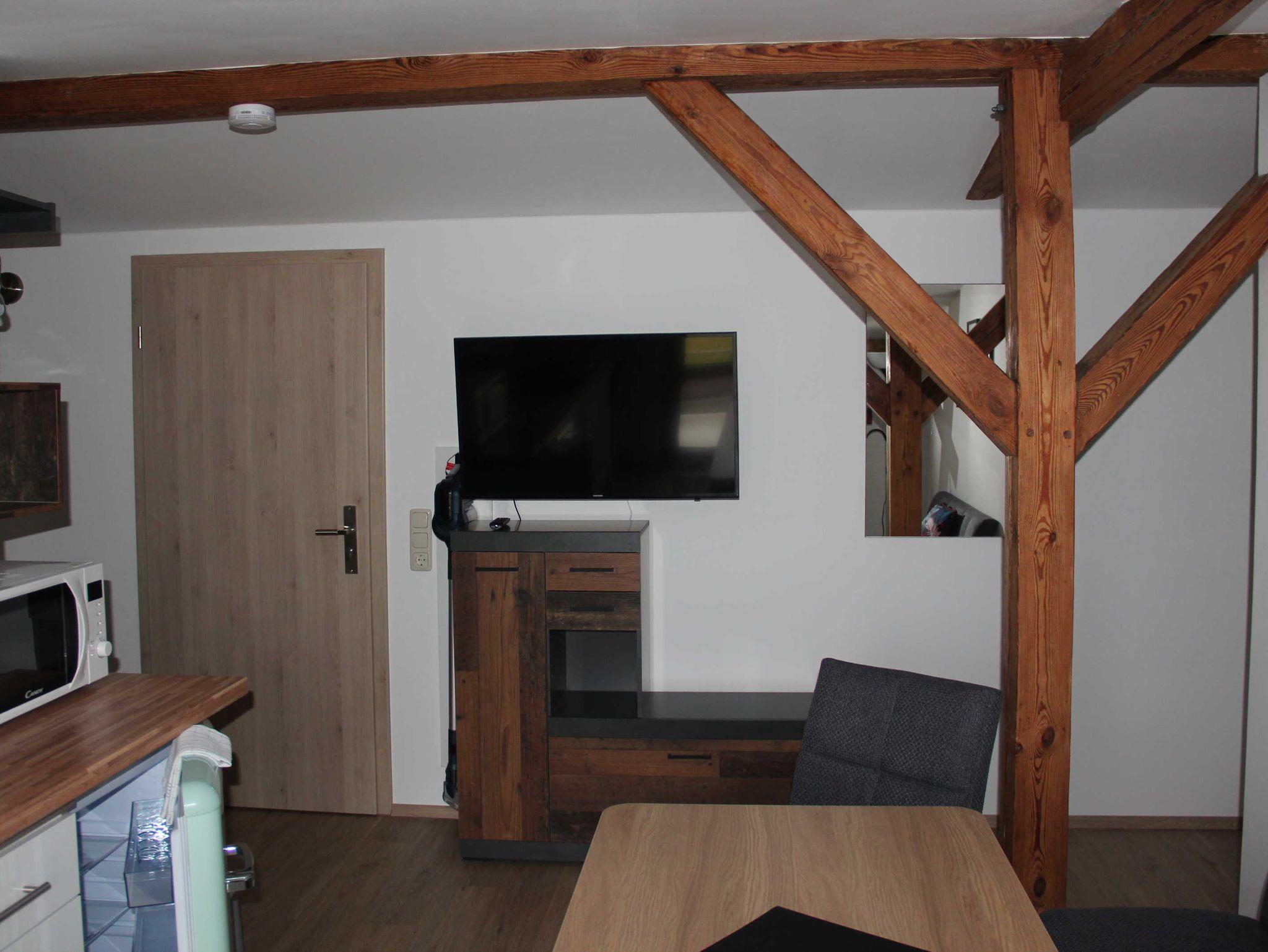Unsere Ferienwohnung „Am Apfelbaum“ bietet viel Platz auf 68 m² für bis zu vier Personen (2 Schlafzimmer). Das im Erdgeschoss gelegene Appartement verfügt über ein großes Wellness Bad mit Badewanne und Dusche. Im Wohnzimmer befindet sich eine gemütliche Lounge Ecke mit SAT TV und Kamin sowie freies WLAN. Eine große Essecke und eine moderne Einbauküche runden die Ausstattung ab. Vom Wohnzimmer gelangt man direkt auf die große Grill & Relaxterrasse die ruhig zum Garten hin liegt. Verbringen Sie hier entspannte und laue Sommerabende mit der Familie oder Freunden.