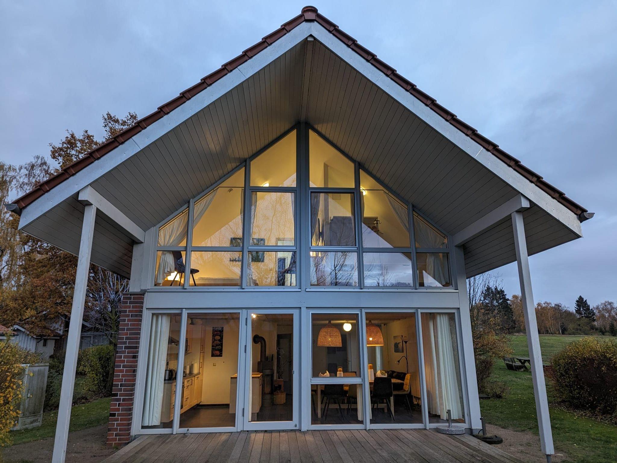 Der offene Wohn-/Essbereich ist unsere lauschige Mitte. Hier kommt jeder auf seine Kosten. Wie wäre es mit ausgiebigem Relaxen auf unserem kuschligen Sofa vor dem mollig-warmen Kamin? Keine Panik, für mehr Action sorgt die digitale Unterhaltung per Smart-TV und WLAN. Die Ausstattung der offenen Küche lässt nur wenig Wünsche offen: Geschirr und Besteck, Spülmaschine, Kühl-Gefrierschrank, Ceranfeld mit Umluftherd stehen jederzeit bereit. Nur das Einkaufen und Kochen müssen Sie noch selbst übernehmen! So macht Selbstverpflegung Spaß! Wir haben uns bei der Auswahl der Möbel und Dekoration sehr viel Mühe gegeben. Mit unserem wohnlichen Ambiente möchten wir für Sie einen Ort auf Zeit zaubern, an dem Sie Ruhe, Gelassenheit und Erholung finden. Das kleine Schlafzimmer im Erdgeschoss verfügt über zwei getrennte Betten und das Badezimmer über eine Dusche. Im Obergeschoss stehen für Sie drei weitere Schlafzimmer mit Kleiderschränken und Nachttischen bereit. Sie sind mit Absicht in schlicht hellem Holz gestaltet worden, um den natürlichen Charakter der Umgebung aufzugreifen. Im zweiten Badezimmer befinden sich eine Dusche und die gemütliche Sauna. Wenn Sie nach draußen in den kleinen Garten treten, dann atmen Sie einmal tief durch und erfreuen sich dann an den beiden Terrassen, wo Sie mit 8 Personen entspannt speisen können oder einfach nur relaxen dürfen. Übrigens, als besonderes Highlight temperieren wir ganzjährig für Sie unseren Outdoor-Whirpool auf 35 Grad.