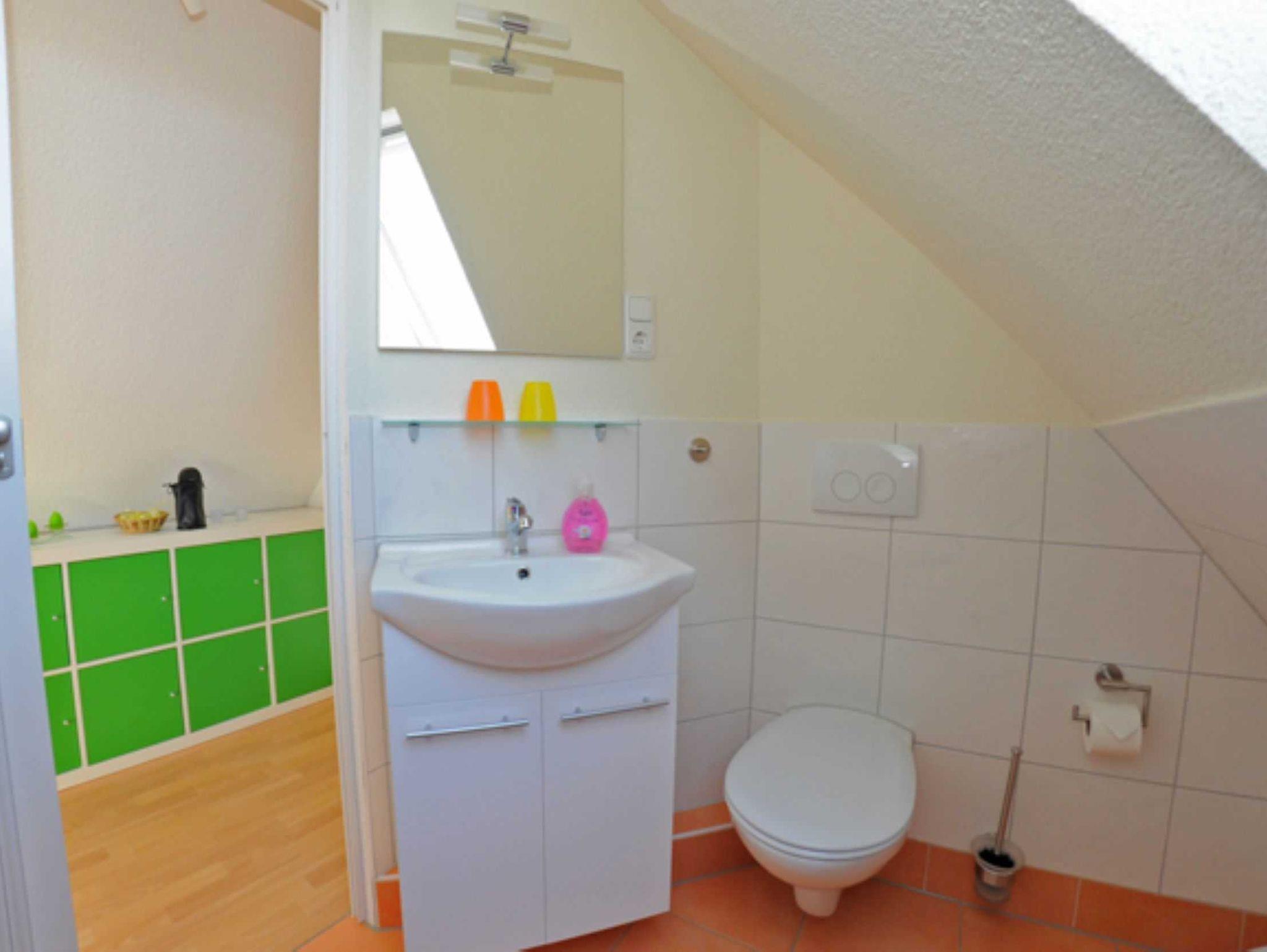 Das kleine 1 Zimmer Dachgeschoss - Appartement im Ferienhaus Müritzlust verfügt über 1 kombinierten Wohn- und Schlafraum, kleiner Essbereich mit Tisch und 2 Stühlen, kleines Wannenbad mit WC, TV, Pantryküche, möbilieten Balkon und guter Schlafcouch. Die rund 25 qm große Ferienwohnung kann mit bis zu 2 Personen belegt werden.