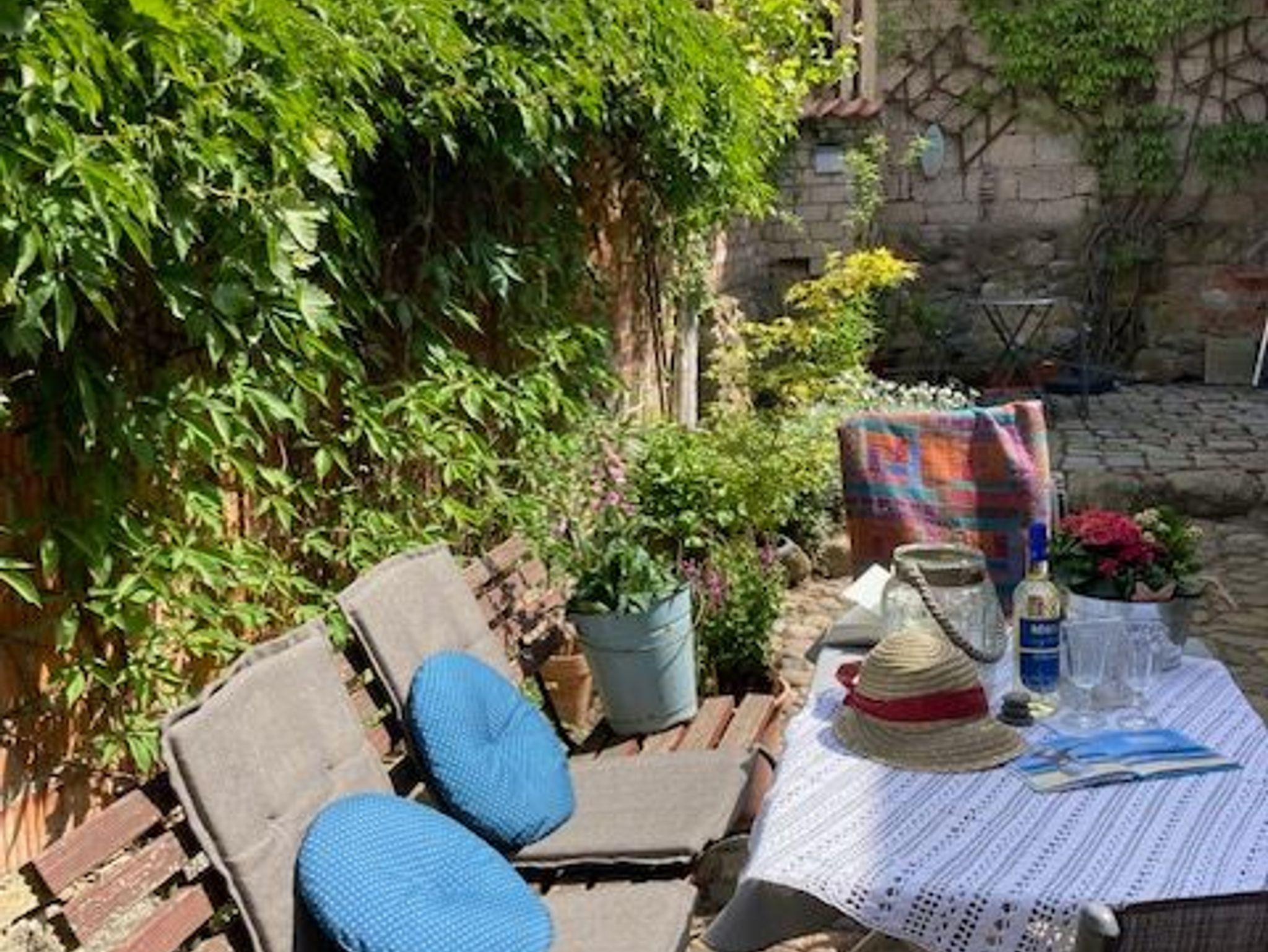 Im begrühnten Innenhof gibt es Sitzmöglichkeiten zur Entspannung. Dort können Sie auch Grillen.