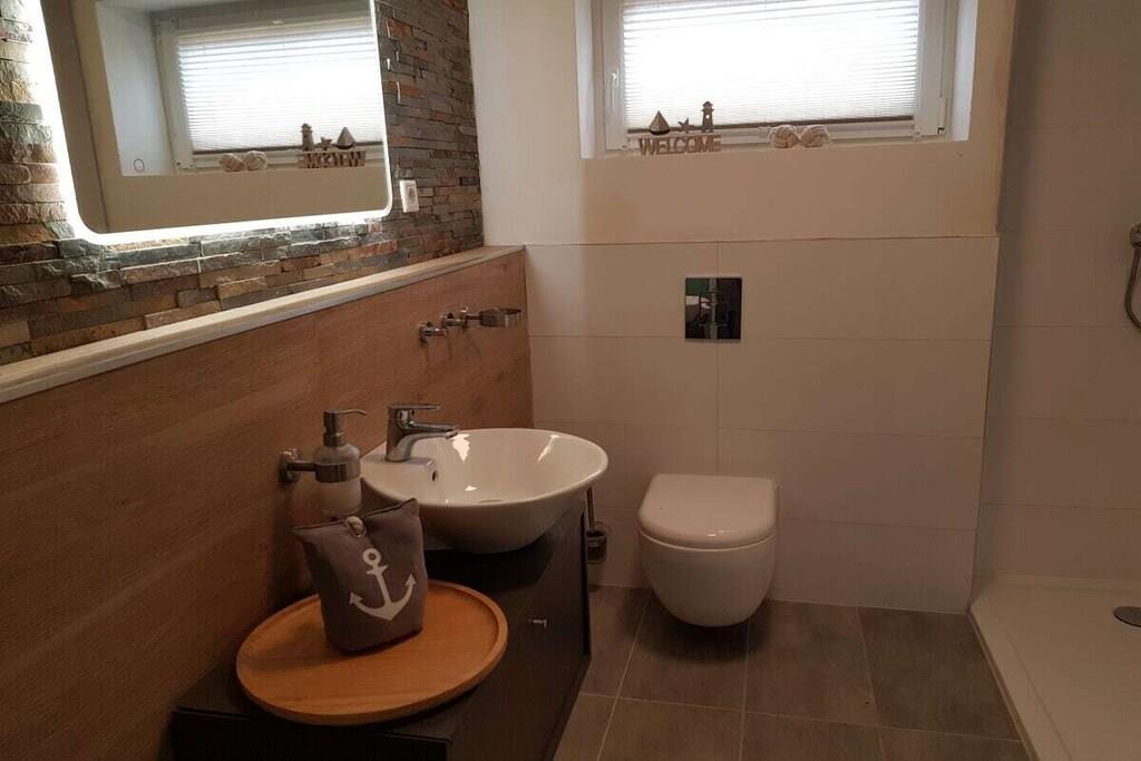 Første etasje: (åpent kjøkken(3 m2)(komfyr med kokeplater, kjøleskap), Stue/spisestue(12 m2)(, , , , WC, TV, spisebord, peisen, komfyr med kokeplater, vannkoker, brødrister, kaffetrakter, grill, mikrobølgeovn, oppvaskmaskin, kjøleskap, fryser, dusj, håndvask, hagemøbler, høy barnestol, Hårtørker), soveværelse(9 m2)(, dobbeltseng), soveværelse(5 m2)(, enkeltseng))