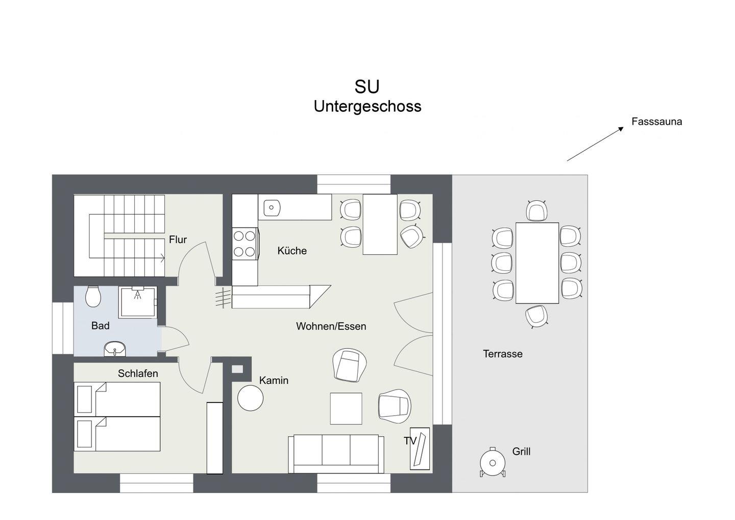 Das Ferienhaus bietet Ihnen drei Wohneinheiten, die wahlweise als gesamtes Haus oder als einzelne Ferienwohnung genutzt werden können. Zusätzlich verfügt das Haus über eine eigene Außensauna und einen Kamin im Untergeschoss.