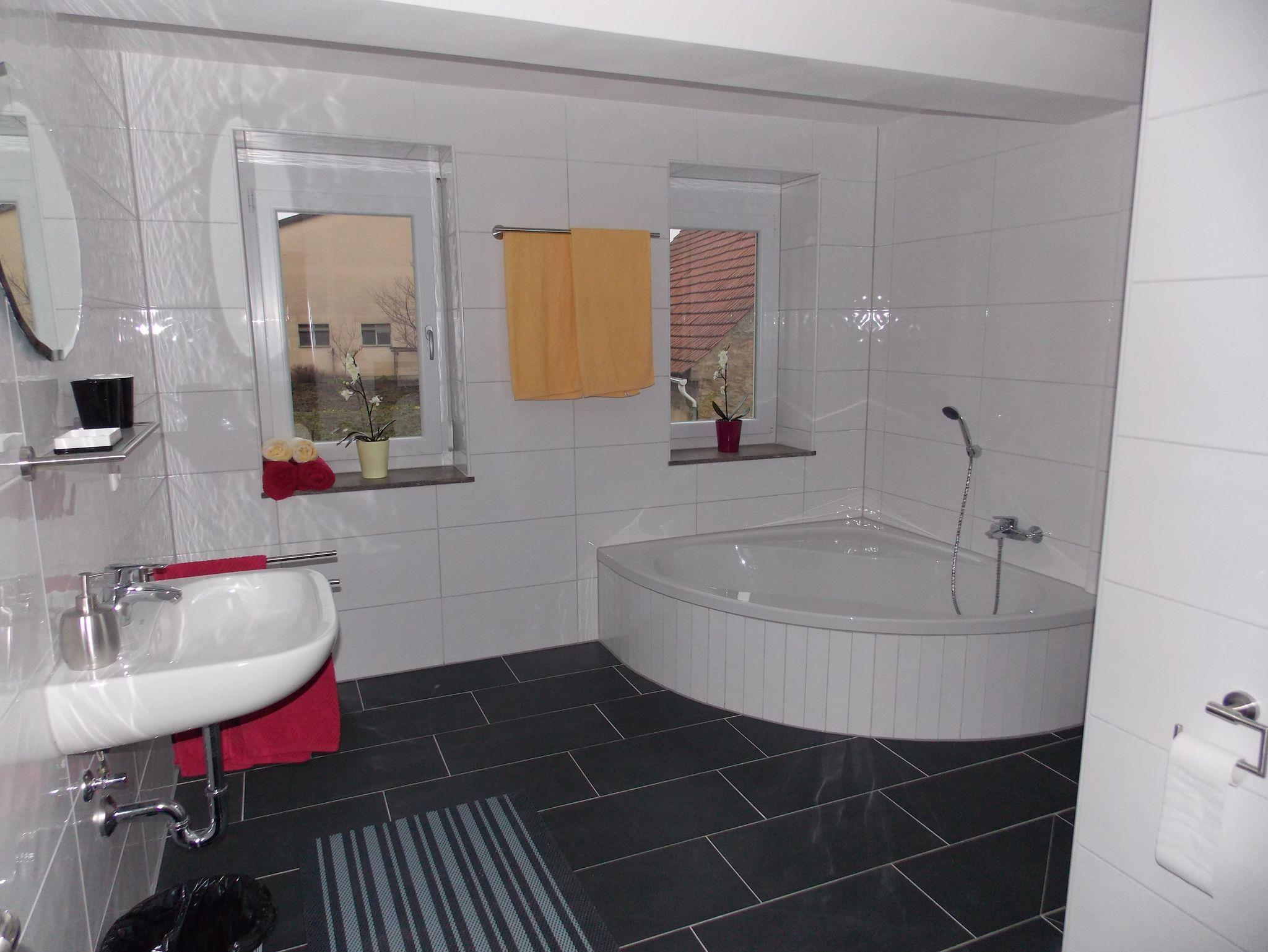 In unserer Ferienwohnung mit circa 48qm erwartet Sie eine gemütliche und gut ausgestattete Unterkunft, die zum Wohlfühlen einlädt. Die moderne Einbauküche mit E-Herd bietet alles, was Sie zur Selbstverpflegung benötigen – ideal für alle, die auch im Urlaub gerne kochen. Im separaten Schlafzimmer finden Sie Ruhe und Erholung, während das Badezimmer mit ebenerdiger Dusche, Eckbadewanne und WC Komfort auf ganzer Linie bietet. Das gemütlich eingerichtete Wohnzimmer verfügt über ein bequemes Schlafsofa und lädt zum Entspannen ein – perfekt auch für Familien oder zusätzliche Gäste. Auf Wunsch steht Ihnen ein Sat-TV zur Verfügung. Genießen Sie Ihren Aufenthalt auf dem Balkon – mit herrlichem Blick ins Grüne.