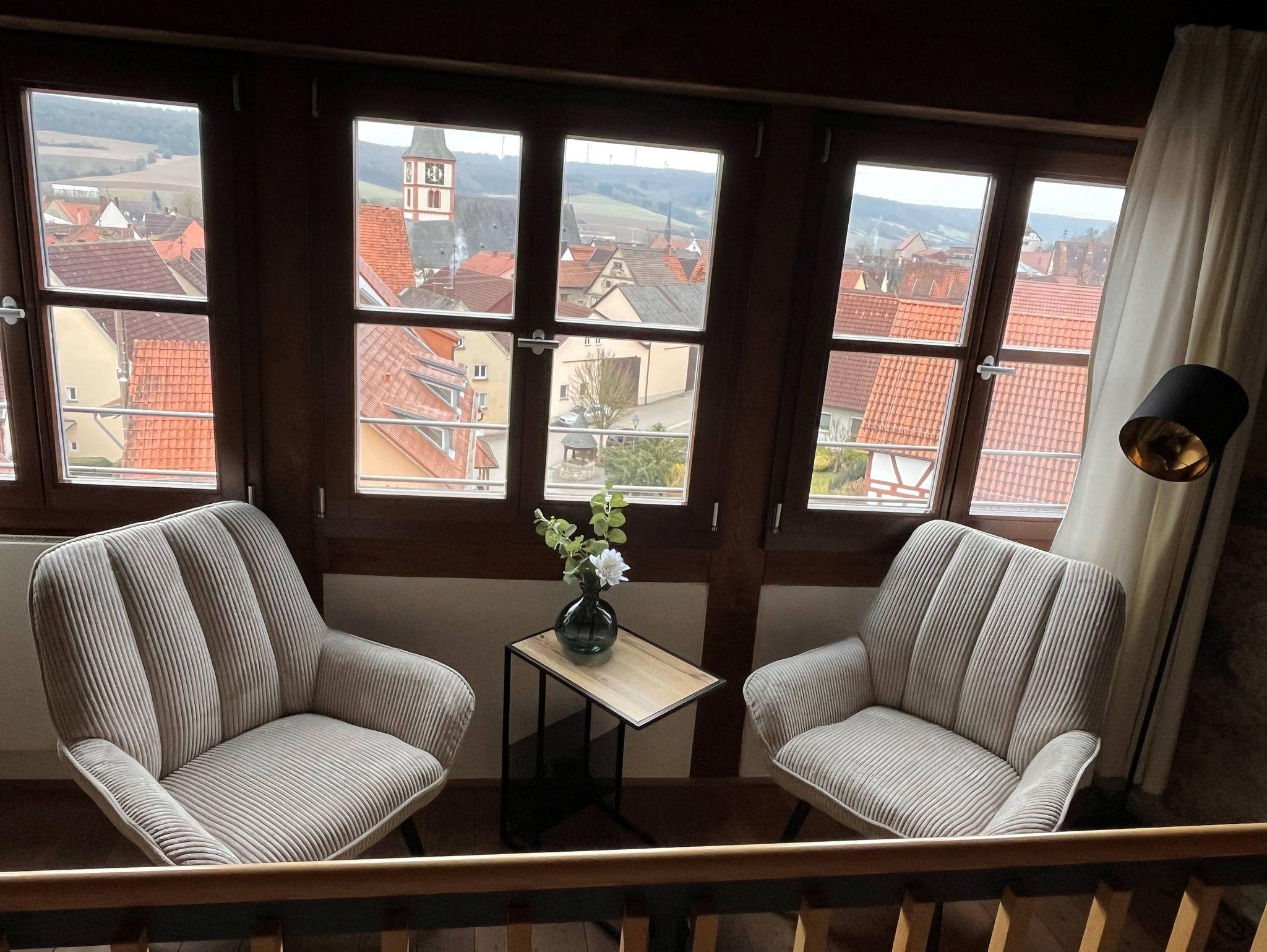 Ferien im Turm, über den Dächern von Röttingen, in der modern eingerichteten Ferienwohnung (4 Etagen) im mittelalterlichen Jakobsturm.