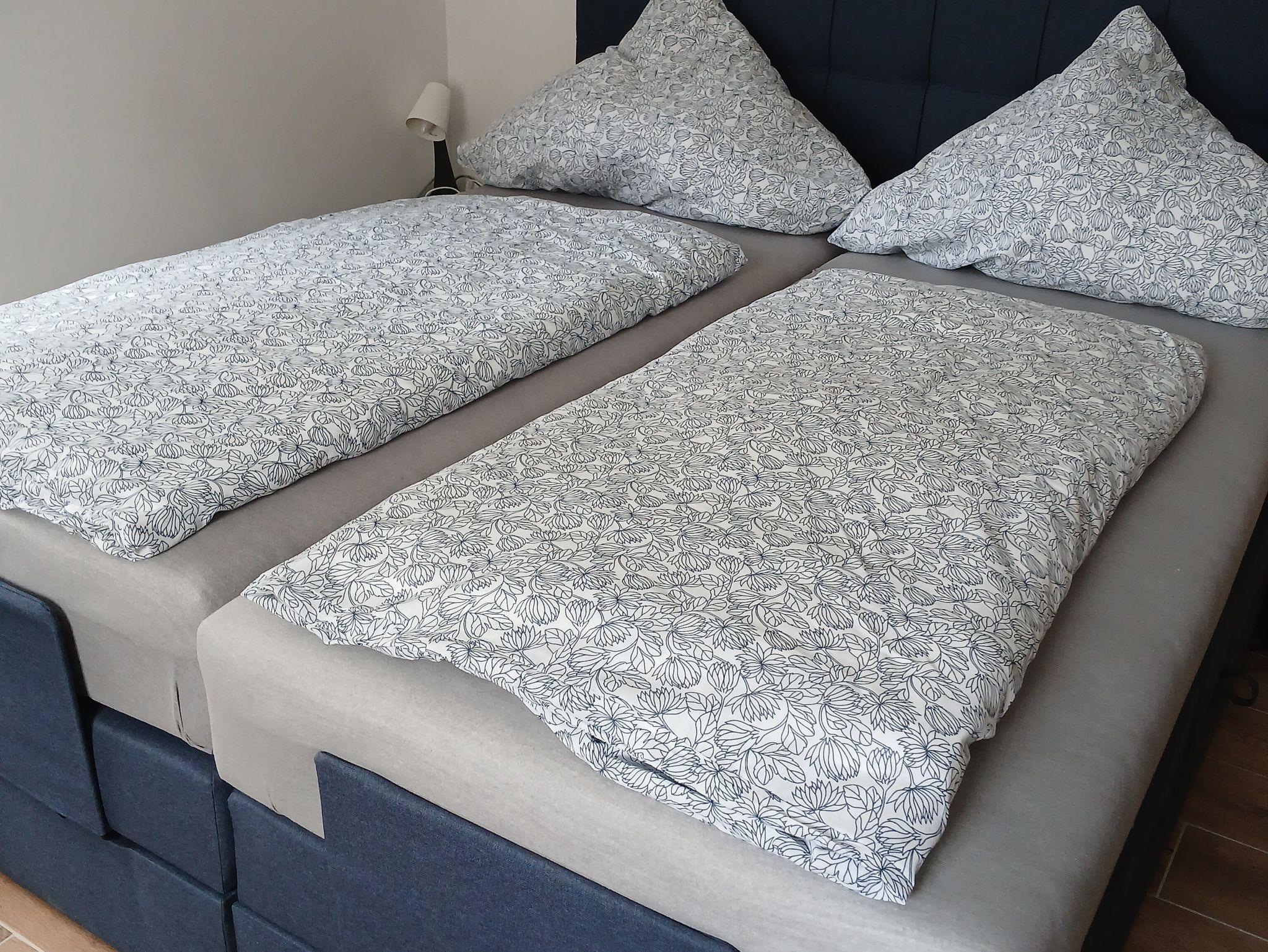 Im Boxspringbett mit Kopf und Fußteil elektrisch zu verstellen finden sie ruhe und Erholung, während das Badezimmer mit ebenerdige Dusche und WC Komfort auf ganzer Linie bietet.