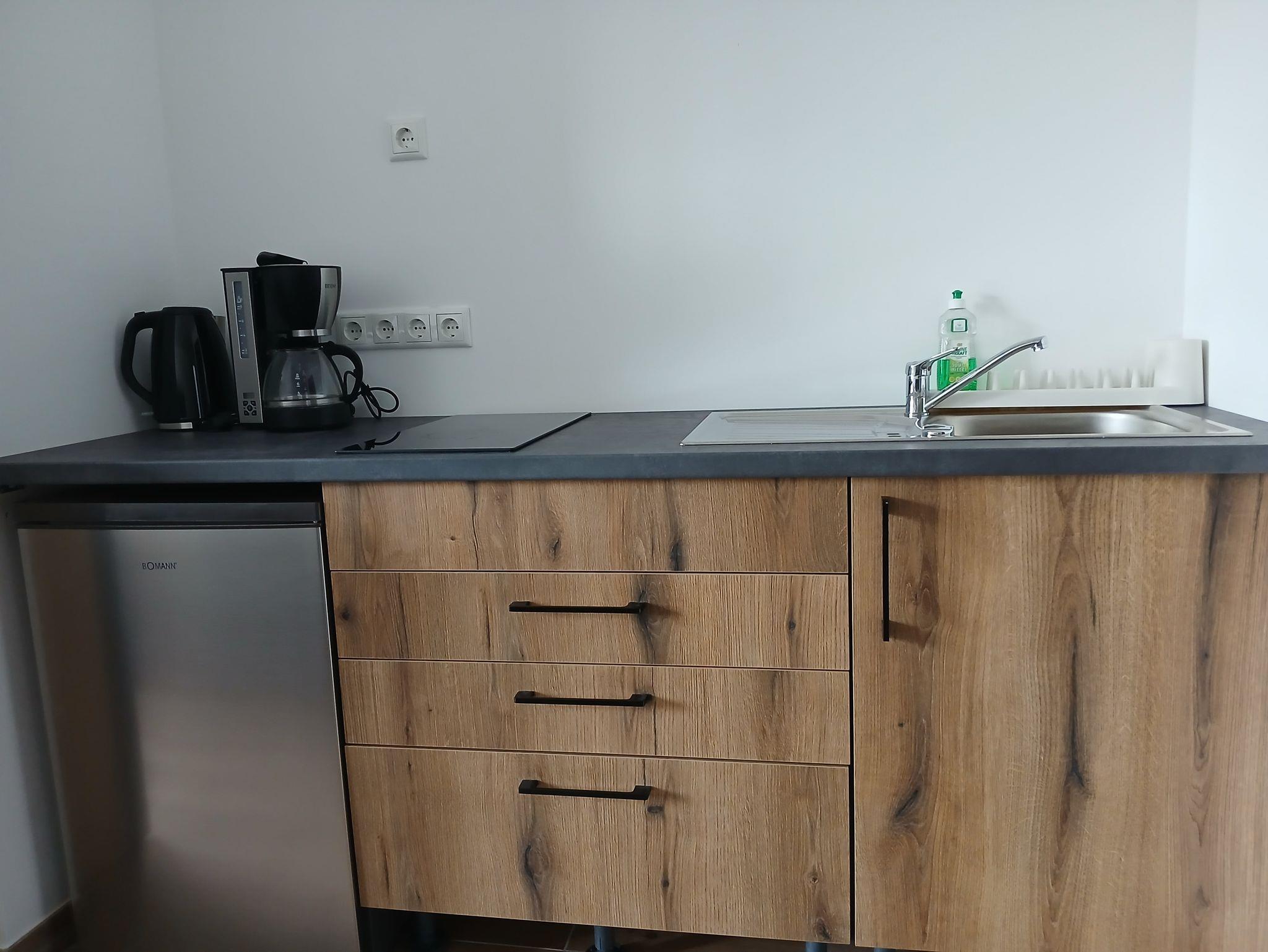 In unseren kleinen Apartments (Doppelzimmer)mit ca.25qm erwartet Sie eine gemütliche und gut aus gestattete Unterkunft, die zum Wohlfühlen einlädt. Die moderne kleine Einbauküche mit 2er Ceranfeld bietet alles, was zur Selbstversorgung benötigen- ideal für alle, die auch im Urlaub gerne Kochen.