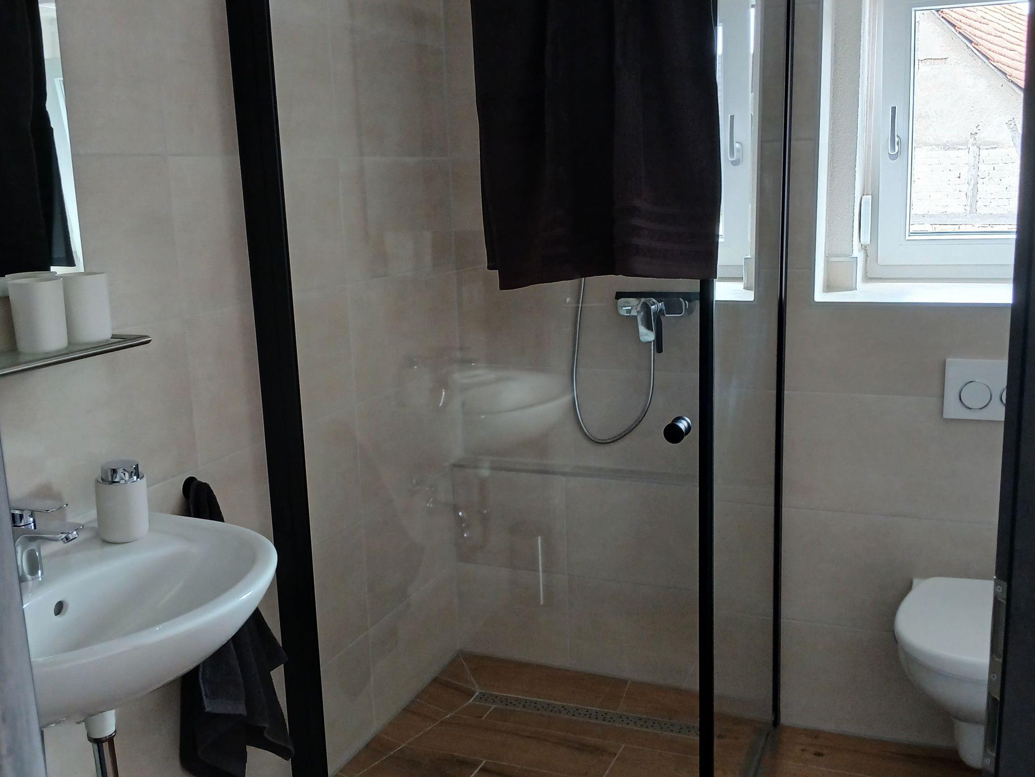 Im Boxspringbett mit Kopf und Fußteil elektrisch zu verstellen finden sie ruhe und Erholung, während das Badezimmer mit ebenerdige Dusche und WC Komfort auf ganzer Linie bietet.