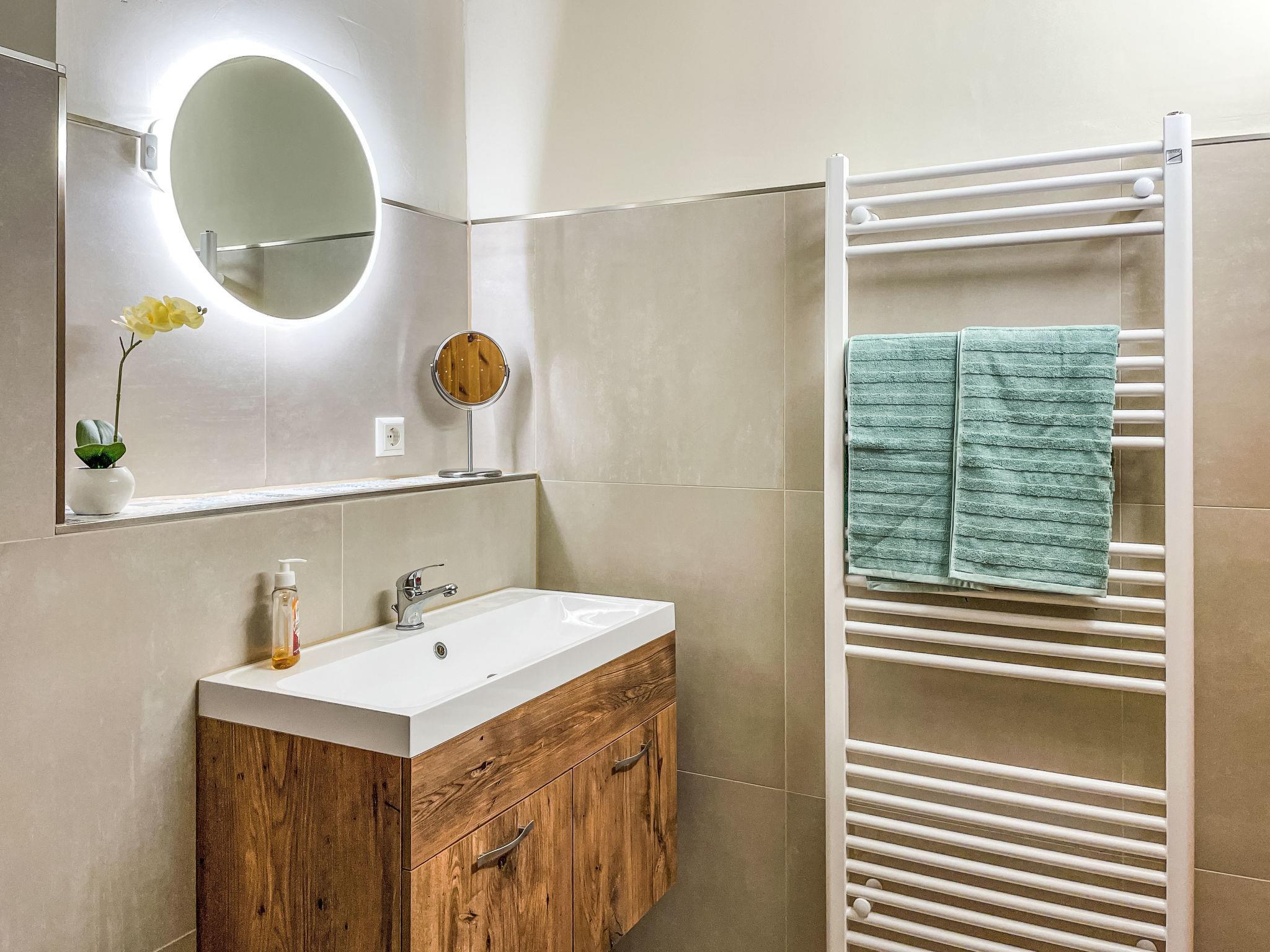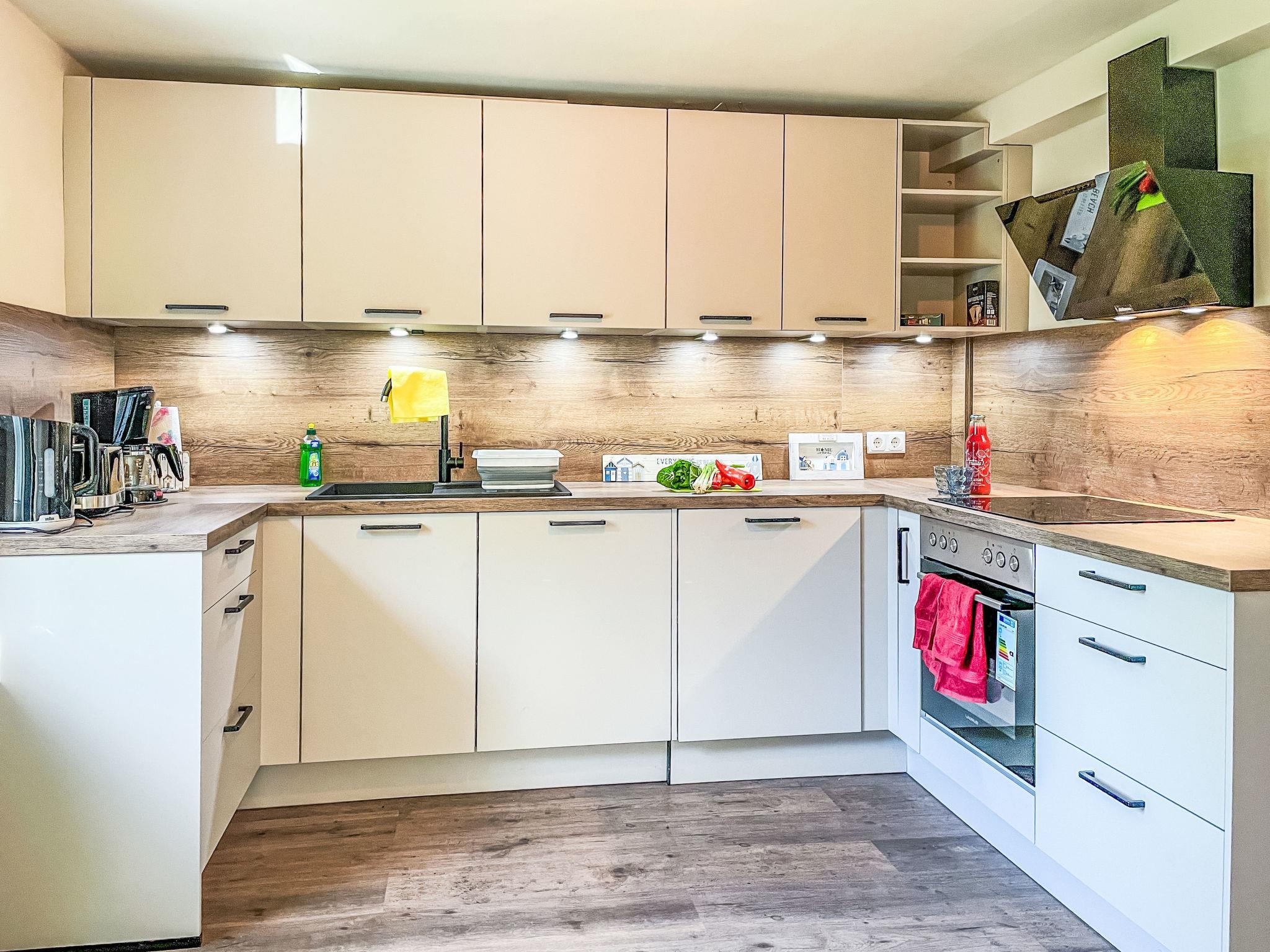 4-room semi-detached house 120 m2 on 2 levels. Spacious, partly with sloping ceilings, cosy and wooden furniture furnishings: entrance hall with Scandinavian wood stove. 2 rooms, each room with 1 double bed (180 cm, length 200 cm). Large, open kitchen (oven, dishwasher, 4 ceramic glass hob hotplates, toaster, kettle, freezer, electric coffee machine) with dining table. Exit to the garden, to the terrace. Shower/WC. Upper floor: large living room with satellite TV (flat screen). Shower/WC. 2nd upper floor: (steep stair), 1 room with sloping ceilings with rooflight with 1 double bed (160 cm, length 200 cm). Large terrace 28 m2. Terrace furniture, barbecue. Facilities: washing machine, children's high chair. Internet (WiFi, free). Parking at the house. Please note: suitable for families. Non-smoking house.