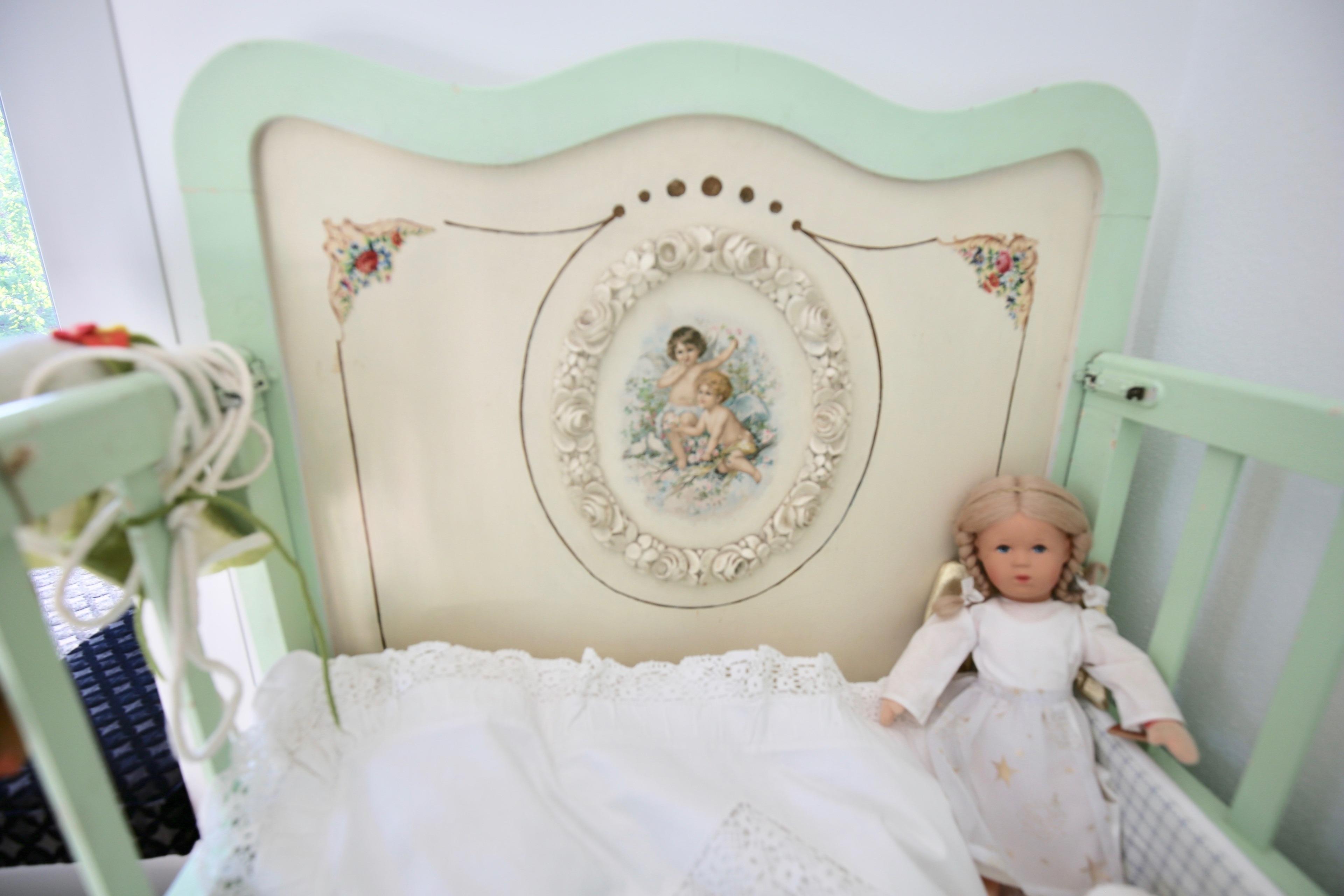 Im Schlafzimmer zum See finden Sie einen kleinen 2. TV und ein antikes Babybettchen für Ihren kleinen Goldschatz.