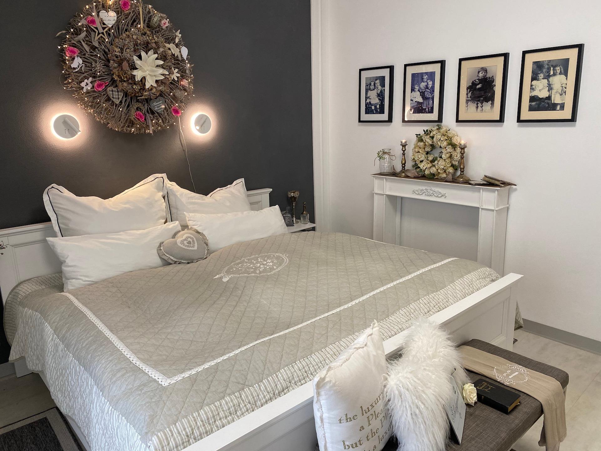 Drei abgeschlossene liebevoll ausgestattete Schlafzimmer mit jeweils einem Doppelbett garantieren erholsame Nachtruhe.