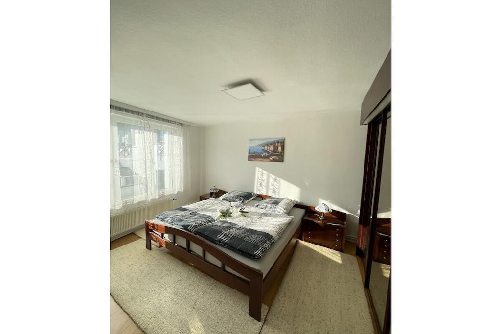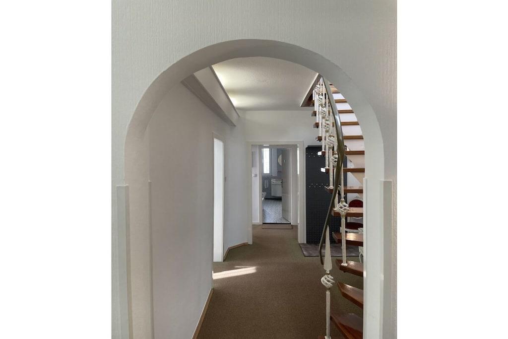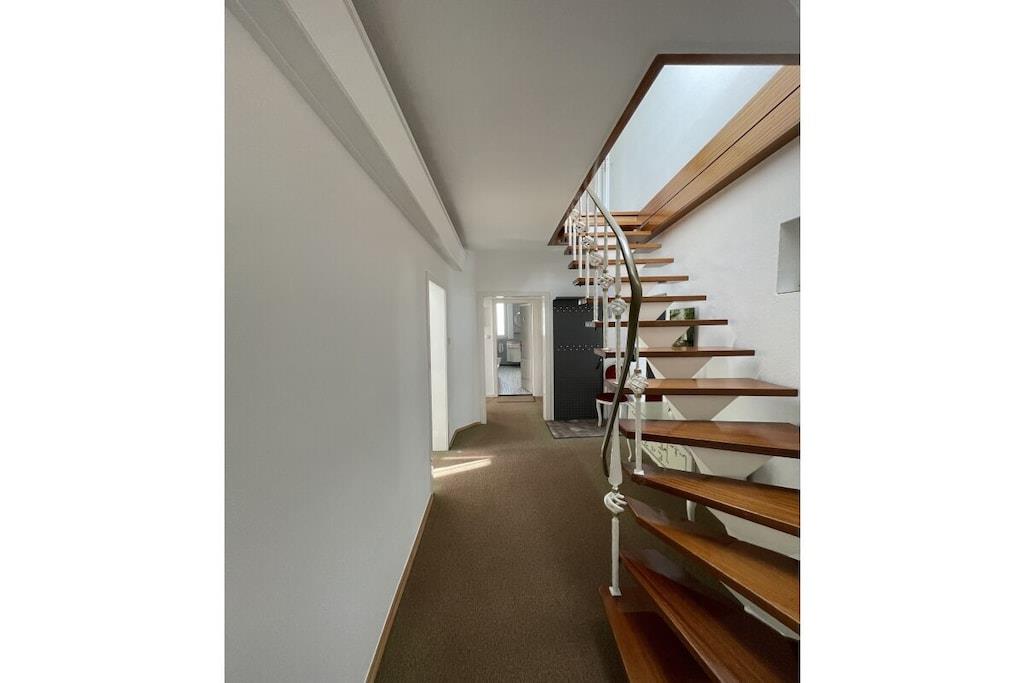 Vi ønsker deg gjerne velkommen til vårt nyrenoverte feriehus i hjertet av Rüdesheim am Rhein. Den sentrale, men rolige beliggenheten gir deg det perfekte utgangspunktet for alle dine aktiviteter. Feriehuset vårt har to etasjer med totalt 130 m²: 1. etasje: stor stue med balkong, et fullt utstyrt kjøkken, romslig gang med garderobe, koselig avslapningsrom, soverom og bad med naturlig lys. 2. etasje: to doble soverom, to enkeltrom (ett med en liten balkong) og et gjestetoalett. Inkluderer en garasje for to biler. Rask, gratis Wi-Fi med 1000 MB/s