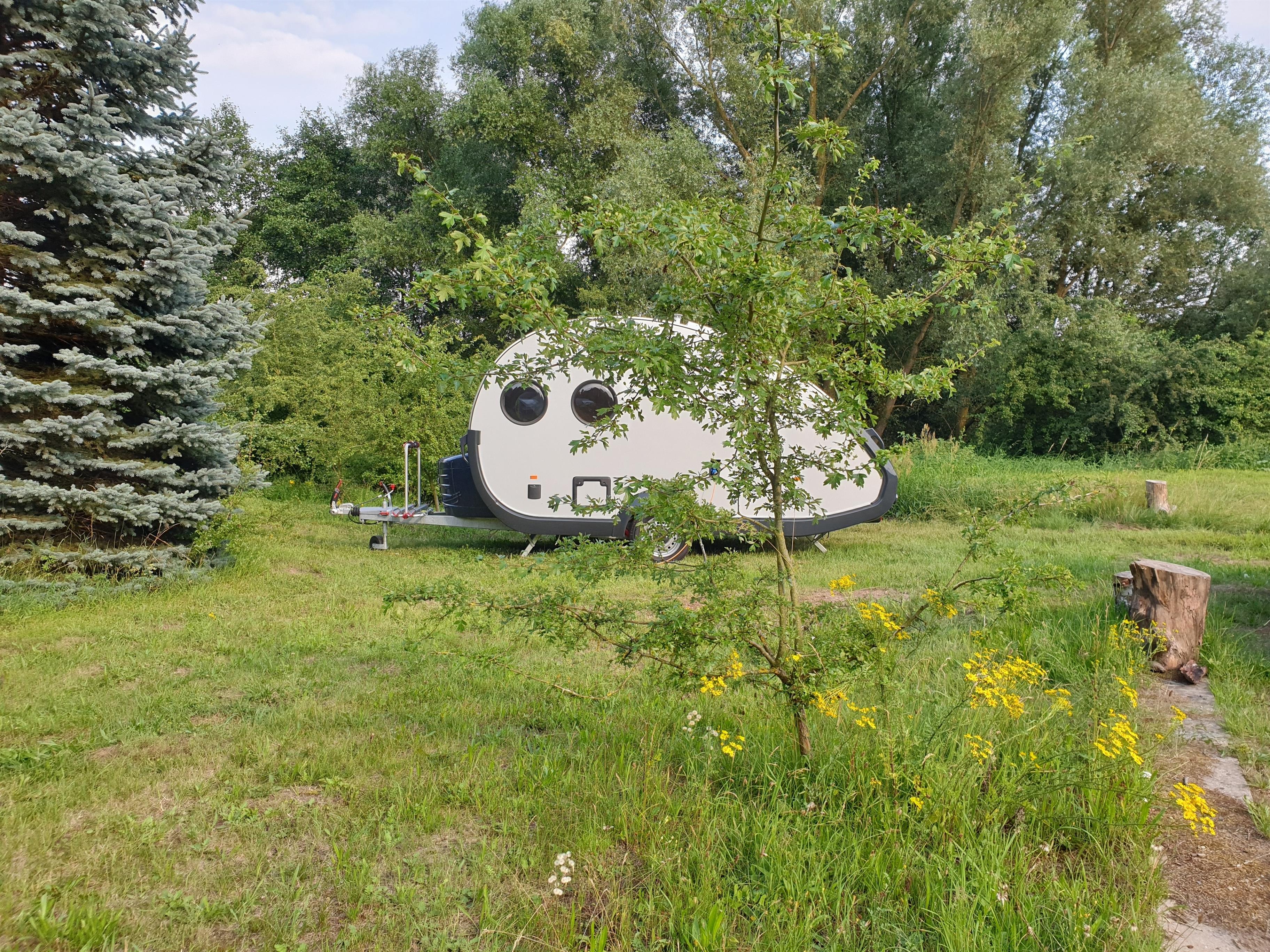 Dein Zuhause auf dem Quaduxenbarg, das ist der T@B 400. Ein komplett ausgestatteter Wohnwagen mit praktischer Kochzeile, Sitzbereich und Doppelbett. Der T@B steht auf unserer Camper Wiese. Lass den Alltag hinter Dir und gönne Dir einige ruhige Tage in naturnaher Umgebung.