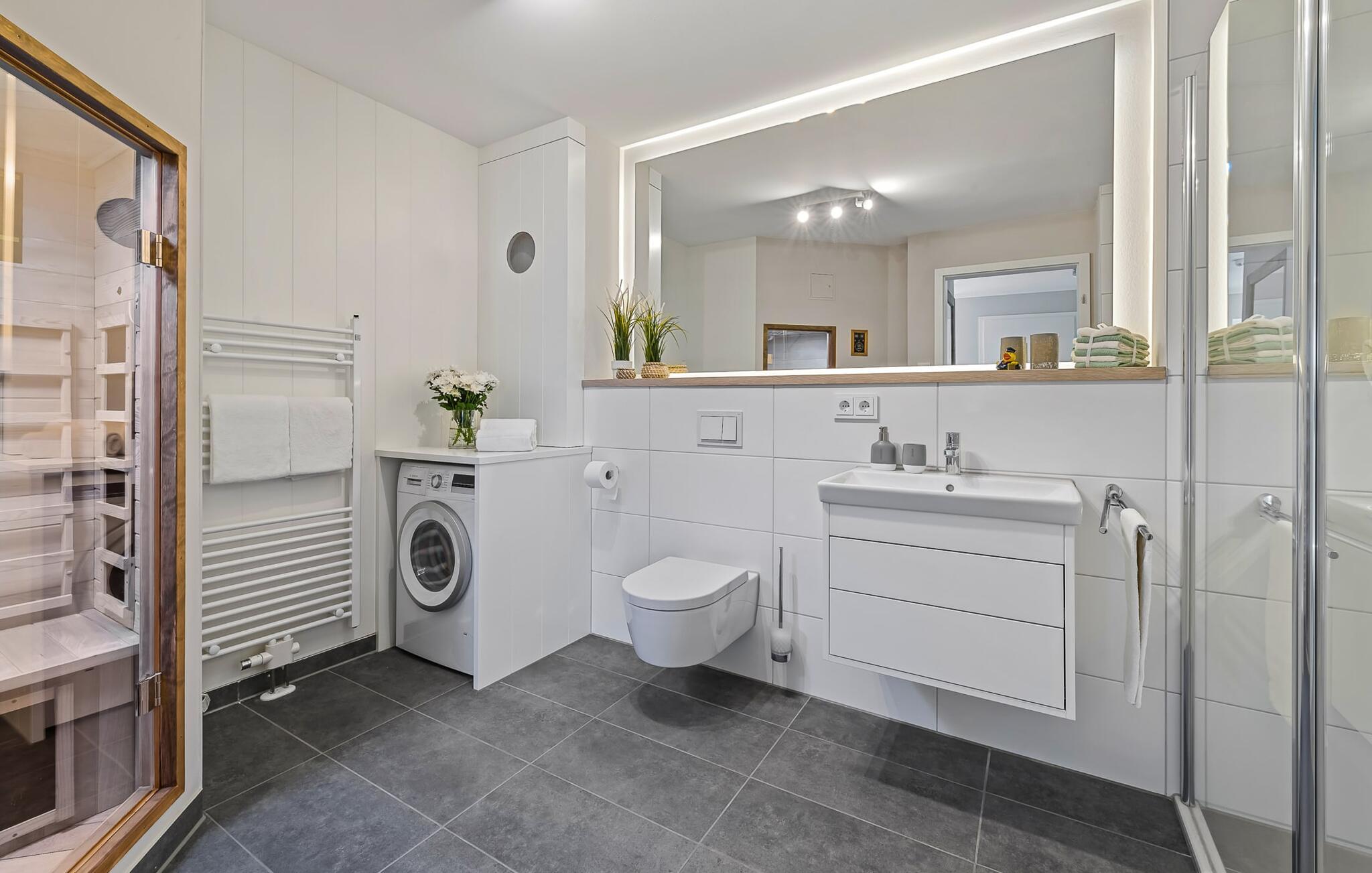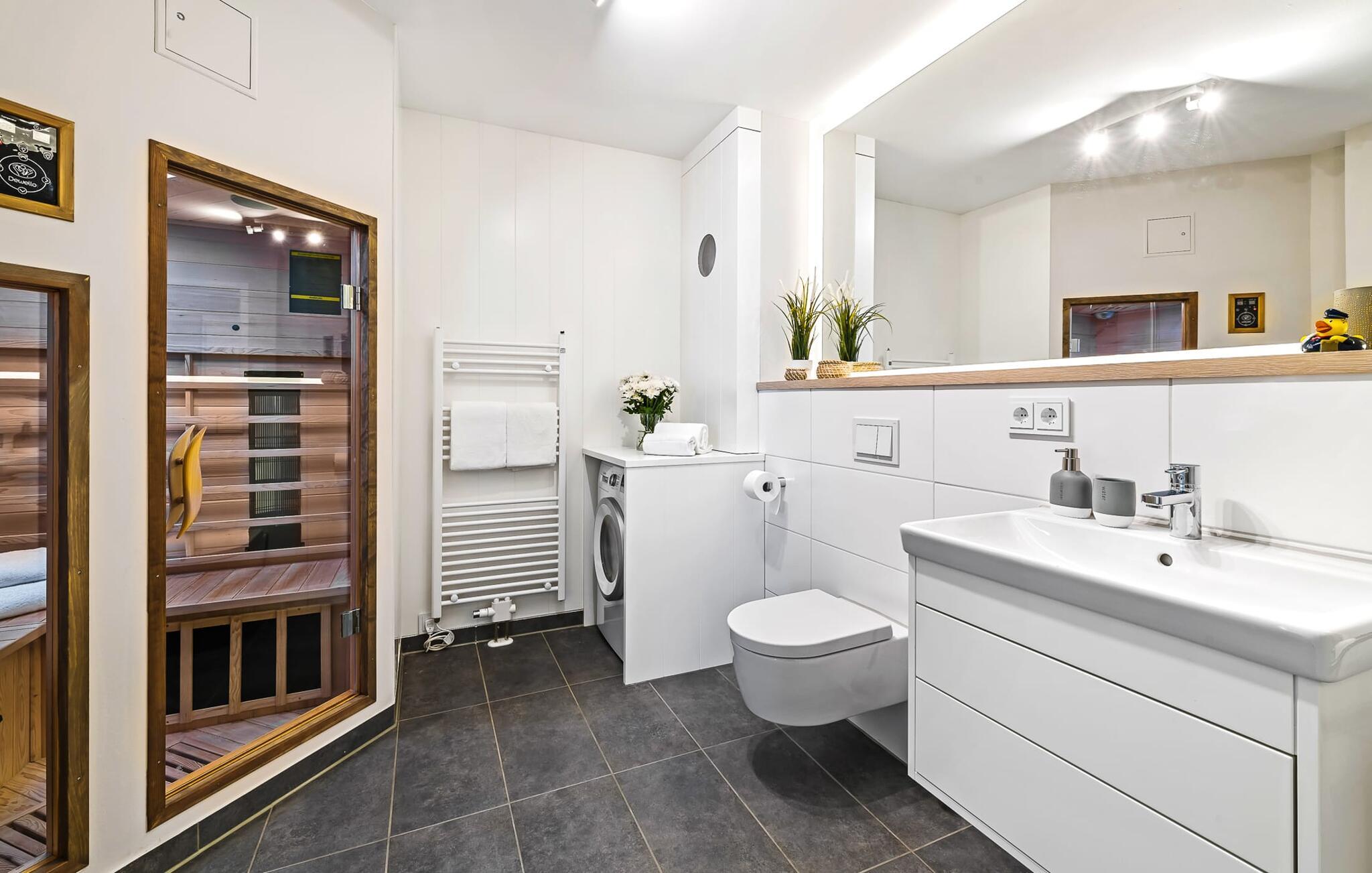 I denne etasjen finner du også et velutstyrt bad med dusjkabinett og infrarød badstue for dine helt egne velværeøyeblikk.