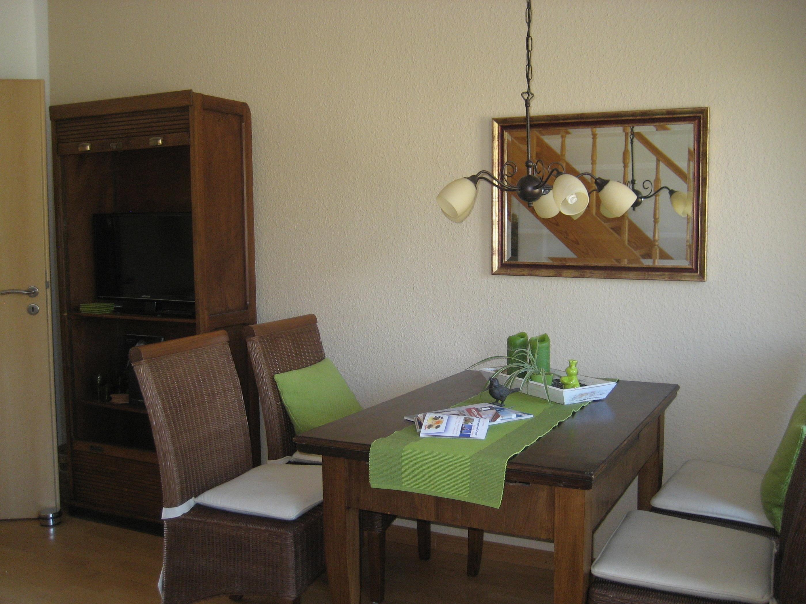 Neu eingerichtete Ferienwohnung im Altenteil eines Bauernhauses über 2 Etagen. Im Obergeschoss befindet sich ein großzügiger Schlafraum mit einem Doppelbett und angrenzendem kleinen Schlafraum mit einem Einzelbett, im Erdgeschoss befinden sich eine Küchenzeile mit Geschirrspülmaschine im Eingangsbereich, ein geschmackvoll eingerichteter Wohnraum, ein Duschbad und die großzügige Terrasse mit direktem Zugang zum Garten.