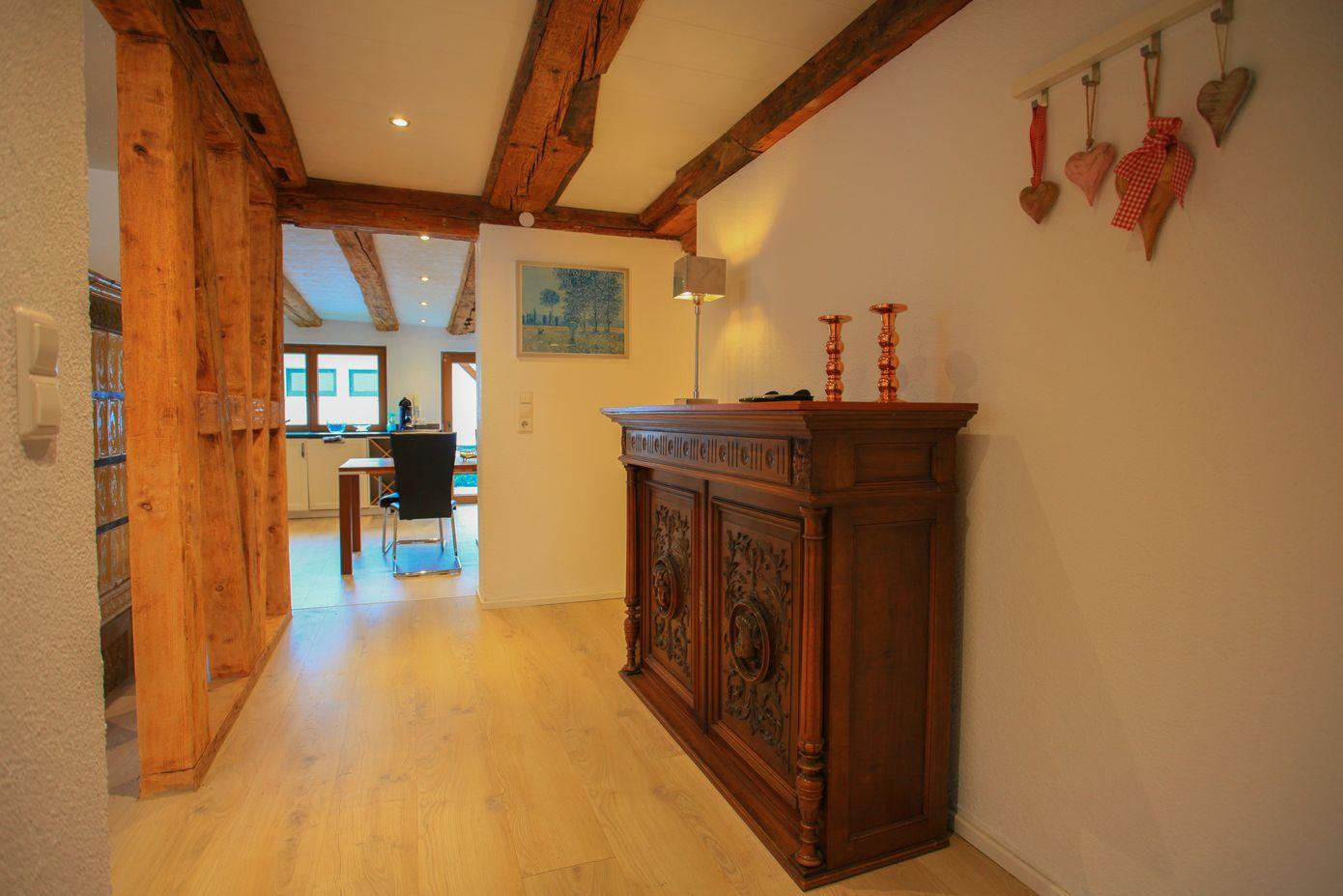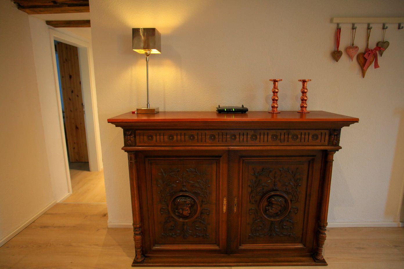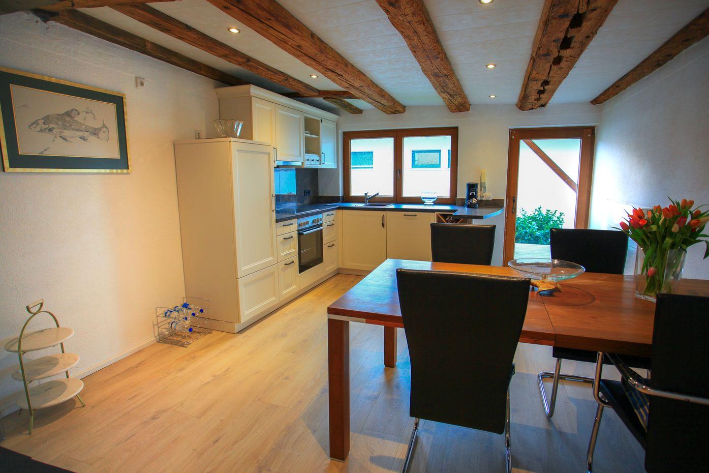 Diese einladende Ferienwohnung, gelegen in einem liebevoll restaurierten Bauernhaus, bietet Ihnen den Freiraum und Komfort, den Sie sich wünschen. Mit zwei gemütlichen Schlafzimmern, einem stilvollen Badezimmer mit Dusche, einer voll ausgestatteten Küche mit Essplatz und einer sonnigen Terrasse ist sie der ideale Ort für einen erholsamen Aufenthalt. Der großzügige Wohnraum mit traditionellem Kachelofen lädt zum Entspannen ein und sorgt für eine behagliche Atmosphäre.