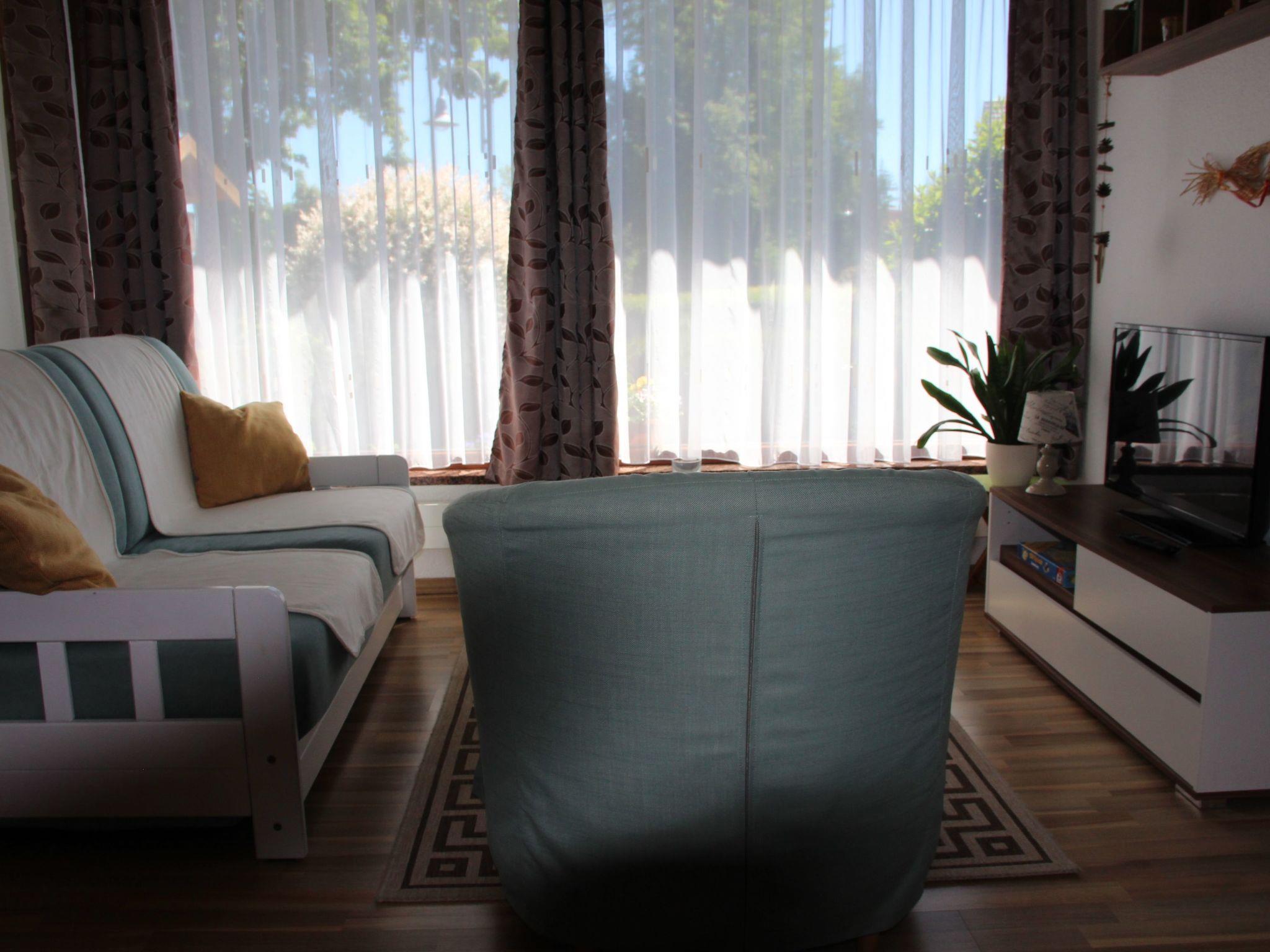 Inside the holiday home, guests will find an inviting and well-thought-out interior. There is space for up to 4 guests in a cosy living room with a sofa and dining area, a bedroom with a double bed, a mini kitchen for self-catering and a bathroom with a shower. This ensemble creates a pleasant atmosphere that makes your stay relaxing and independent of the day's activities.