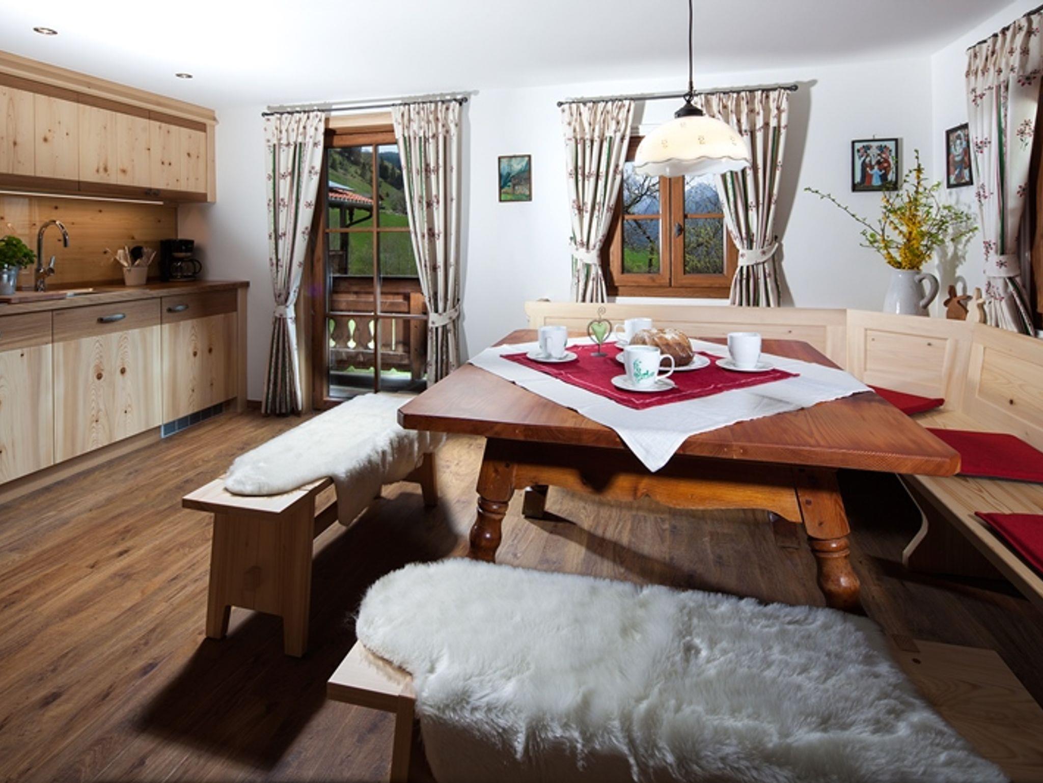 Unsere neue Ferienwohnung Holzstub´n im Obergeschoss bietet Platz für 4 Personen. Der Charme des alten Bauernhauses wie auch in den zwei Schlafzimmern mit eigener Dusche/WC bieten ein unvergessliches Urlaubsgefühl. Auf unseren Rundumbalkon kann man das Bergpanorama und die grünen Wiesen so richtig genießen. Ideal für Ruhesuchende und Naturliebhaber. Bei Belegung mit zwei Personen steht Ihnen ein Schlafzimmer zur Verfügung, das zweite Schlafzimmer kann gegen Aufpreis mitbenutzt werden. Zu der Ferienwohnung kann man für die fünfte und sechste Person ein Doppelzimmer dazu mieten.