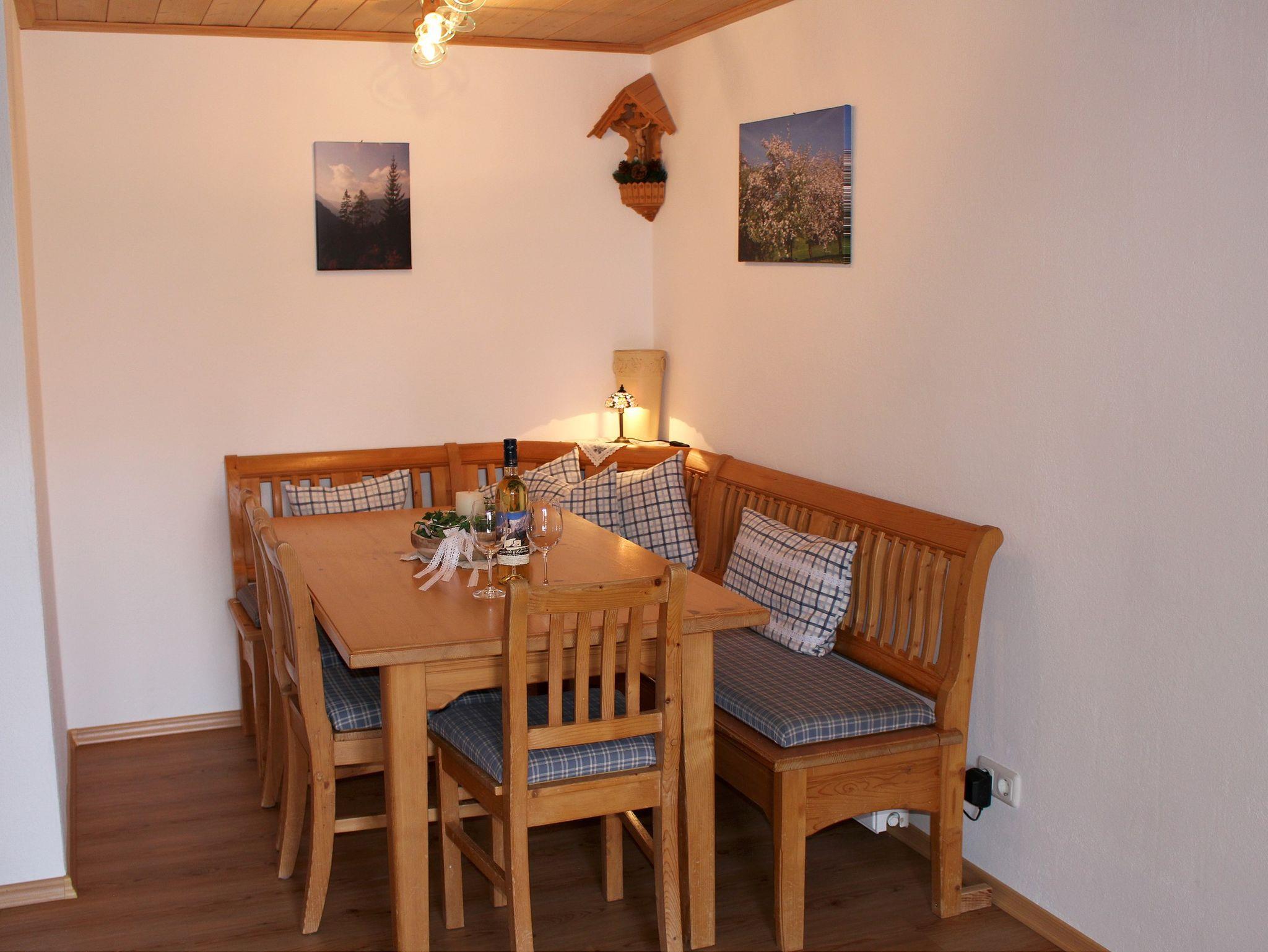 Unsere neu renovierte Ferienwohnung 'Edelweiß' befindet sich im 1. Obergeschoss. Auf ca. 80 qm verteilt finden Sie eine separate Küche, einen großen Wohnbereich, ein Bad, Flur sowie 2 Schlafzimmer. Die vollausgestattete Küche verfügt über Mikrowelle, Kaffeemaschine, Toaster, Geschirrspüler, Essecke mit Eckbank und großem Tisch. Außerdem befindet sich eine (Schlaf-) Couch und ein großer Flachbildschirm in diesem Bereich. Das Bad ist ausgestattet mit einer Badewanne, separater, ebenerdiger Dusche, WC, Waschtisch, Handtuchtrockner, Fön, Kosmetikspiel sowie Fußbodenheizung.