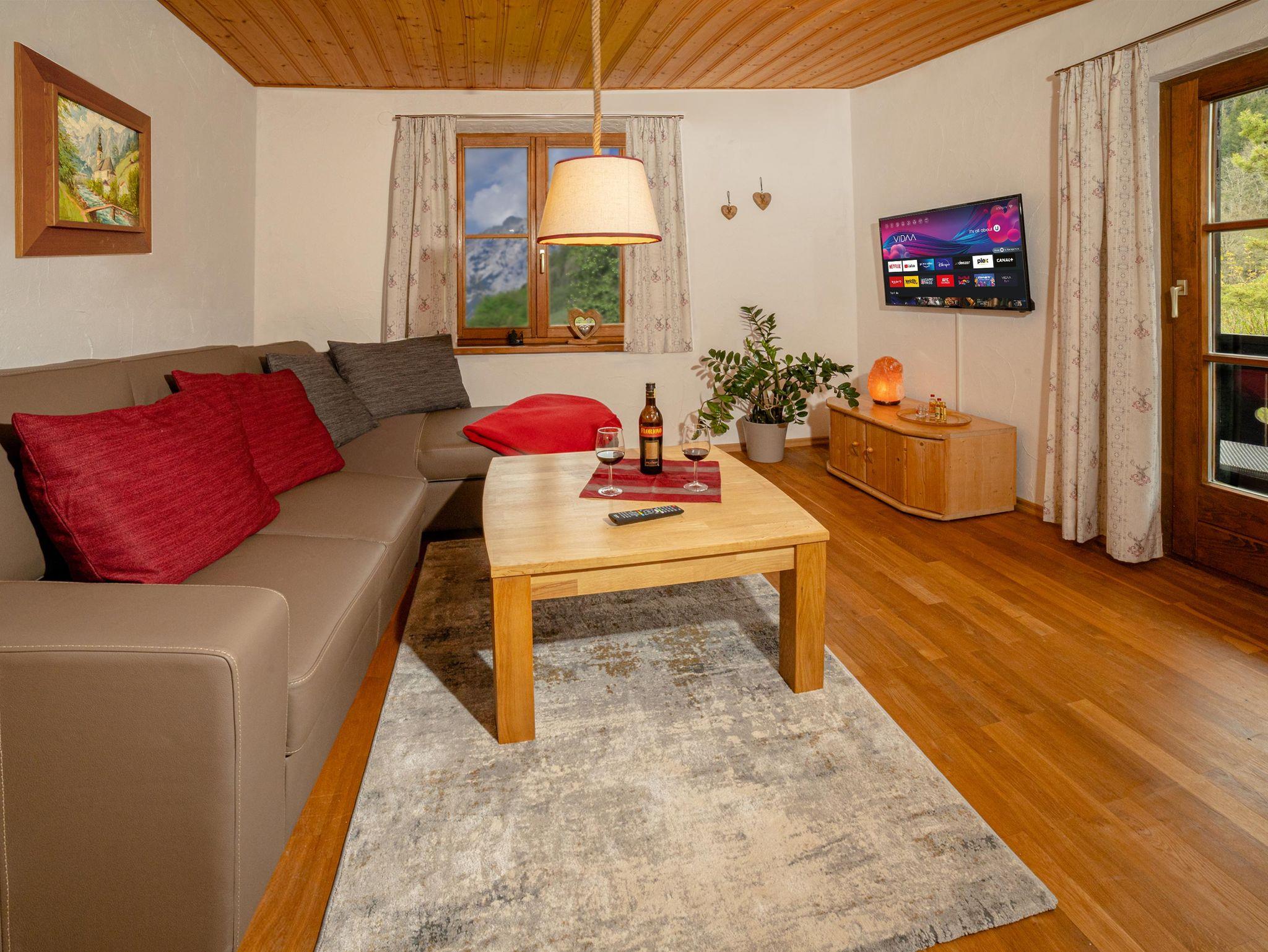 Ruhige, gemütliche Ferienwohnung zu Füßen des Watzmanns und Hochkalters am Eingang zur Wimbachklamm und ins Wimbachtal. Großer Balkon, Nordlage, getrenntes Schlafzimmer, neue, voll ausgestattete Wohnküche mit offenem Durchgang zum Wohnzimmer. Liegewiese, Parkplatz. Idealer Ausgangspunkt für die schönsten Wanderungen und Touren im Nationalpark.Nichtraucherwohnung, gerne können Sie Ihre Zigarette auf dem Balkon genießen.