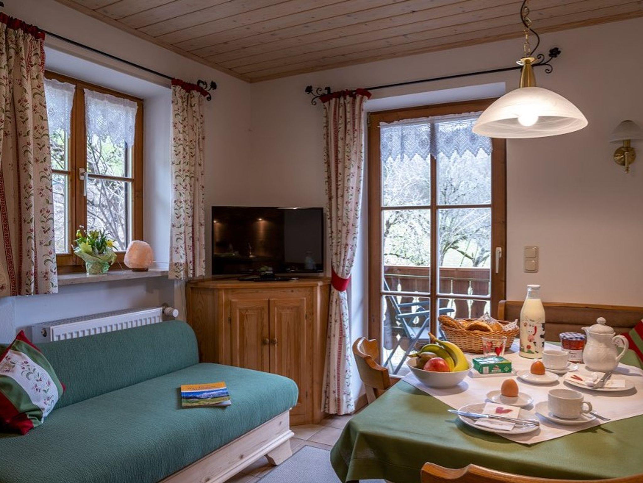 Morgens am Balkon die Sonne geniessen und den Blick Richtung Jenner, Schneibstein und Watzmann ruhen lassen. Geweckt werden Sie von den Vögeln, die in den Obstbäumen sitzen. Kein Aus- und Einpacken über beschwerliche Treppen.