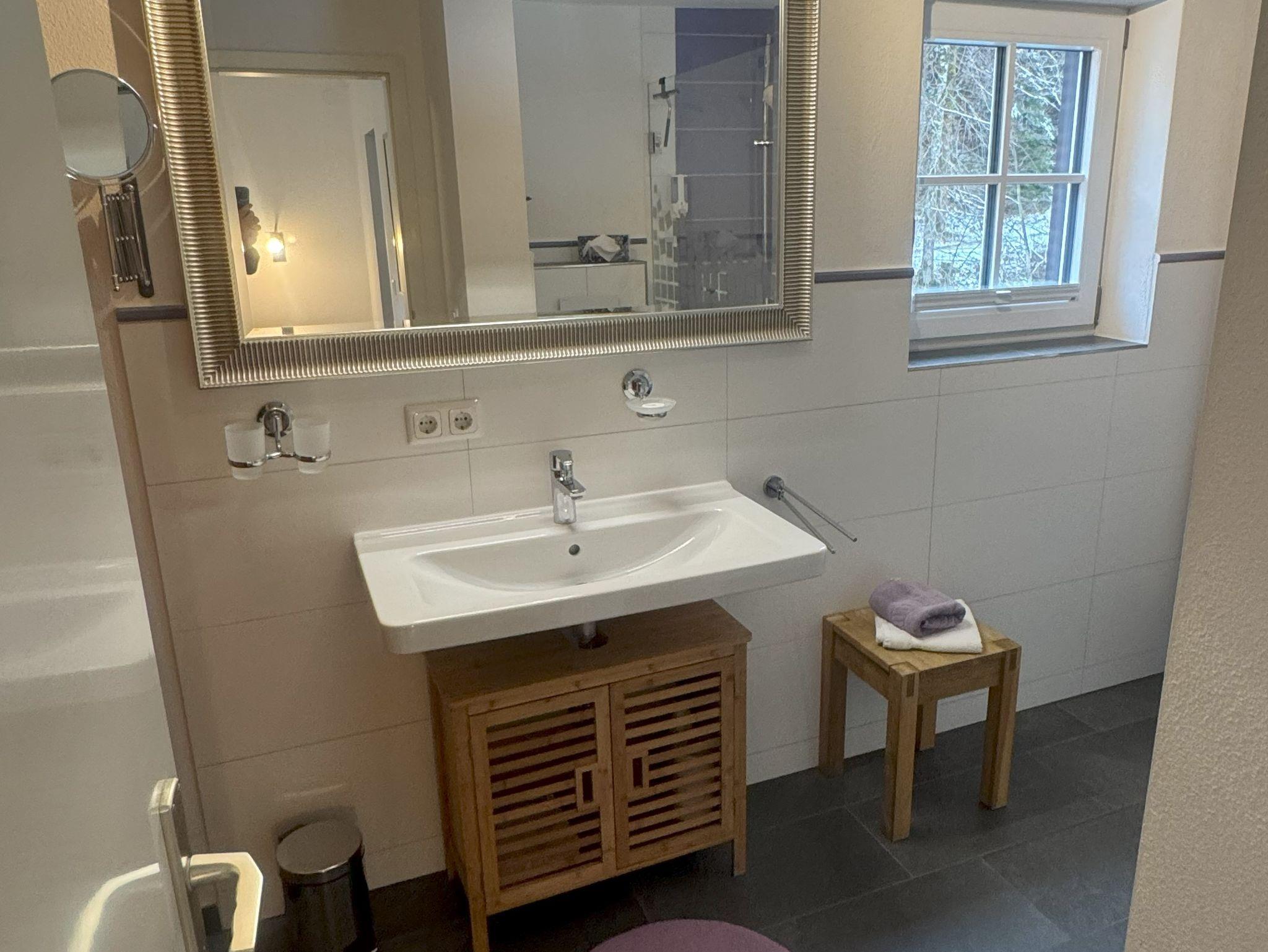 Attraktiv und neu eingerichtete Ferienwohnung mit insgesamt 62 m² Wohnfläche (inkl. eigenem Balkon und Terrasse). Ein ganz besonderes Angebot: Neben dem neuen, luxuriösen Badezimmer mit Fußbodenheizung, Waschtisch, Dusche + WC und Handtuchwärmer wartet auf Sie eine Infrarot-Wärmekabine (für 2 Personen) aus Zedernholz als gesunde und schonende Wärmetherapie. Sonstige Einrichtung: Free-Wlan, 2 Flat-TV (Wohn- und Schlafraum), DVD, Wohn- und Schlafraum getrennt, im Wohnbereich Funktionssofa für 1-2 Personen, im Schlafzimmer 1 Doppelbett (2x2 m), zusätzliche Liege im Schlafbereich. Einbauküche mit Ceran-Kochfeld (4 Kochfelder), Geschirrspüler, Backofen, Mikrowelle, Kühlschrank mit Gefrierfach und Dunstabzughaube. Wunderschöne Sicht vom eigenen Balkon auf den Hohen Göll im Südosten und auf die Ramsauer Ache, auf der Terrasse Sicht auf das Gebirgsmassiv der Reiteralm im Westen.