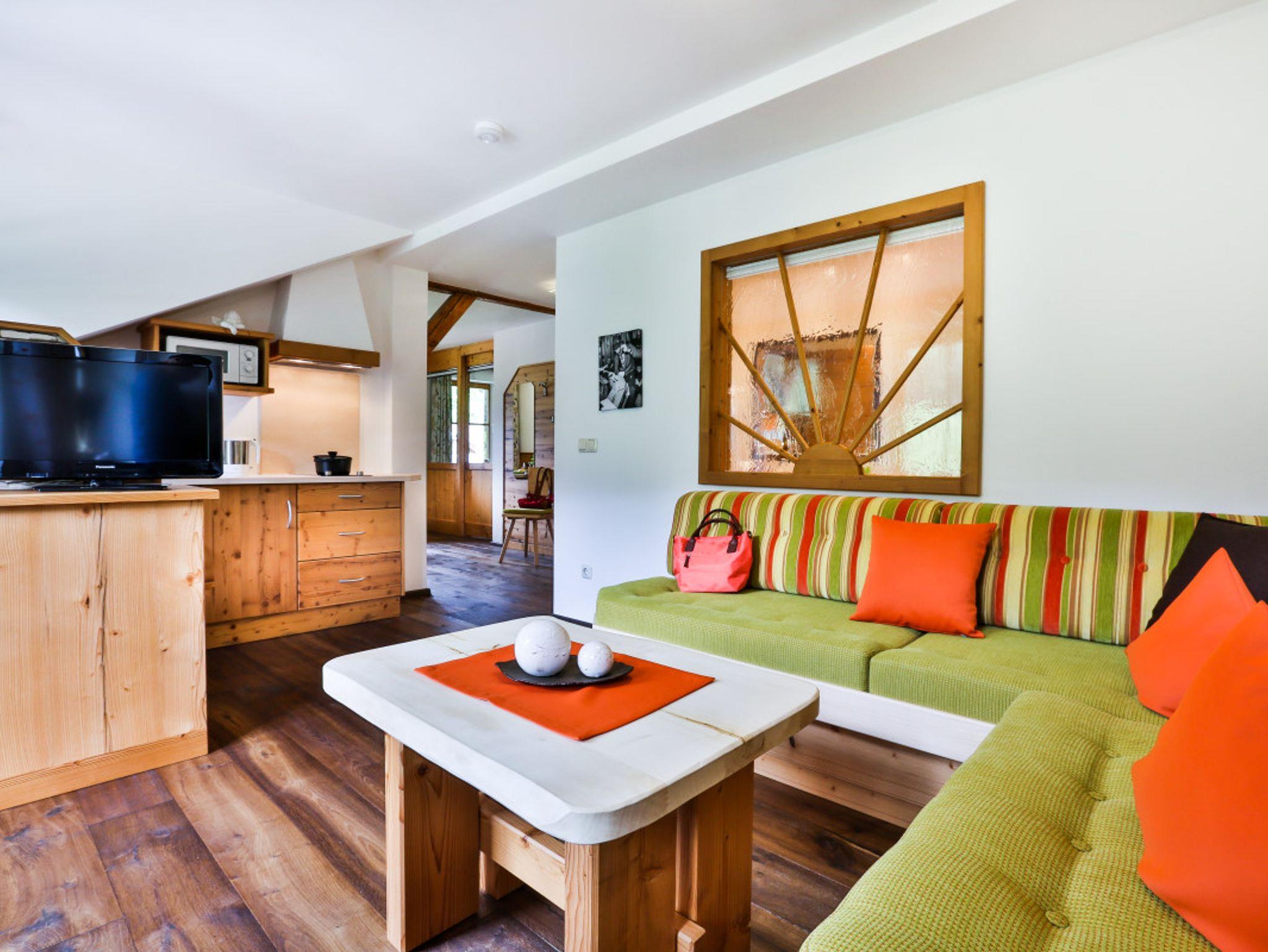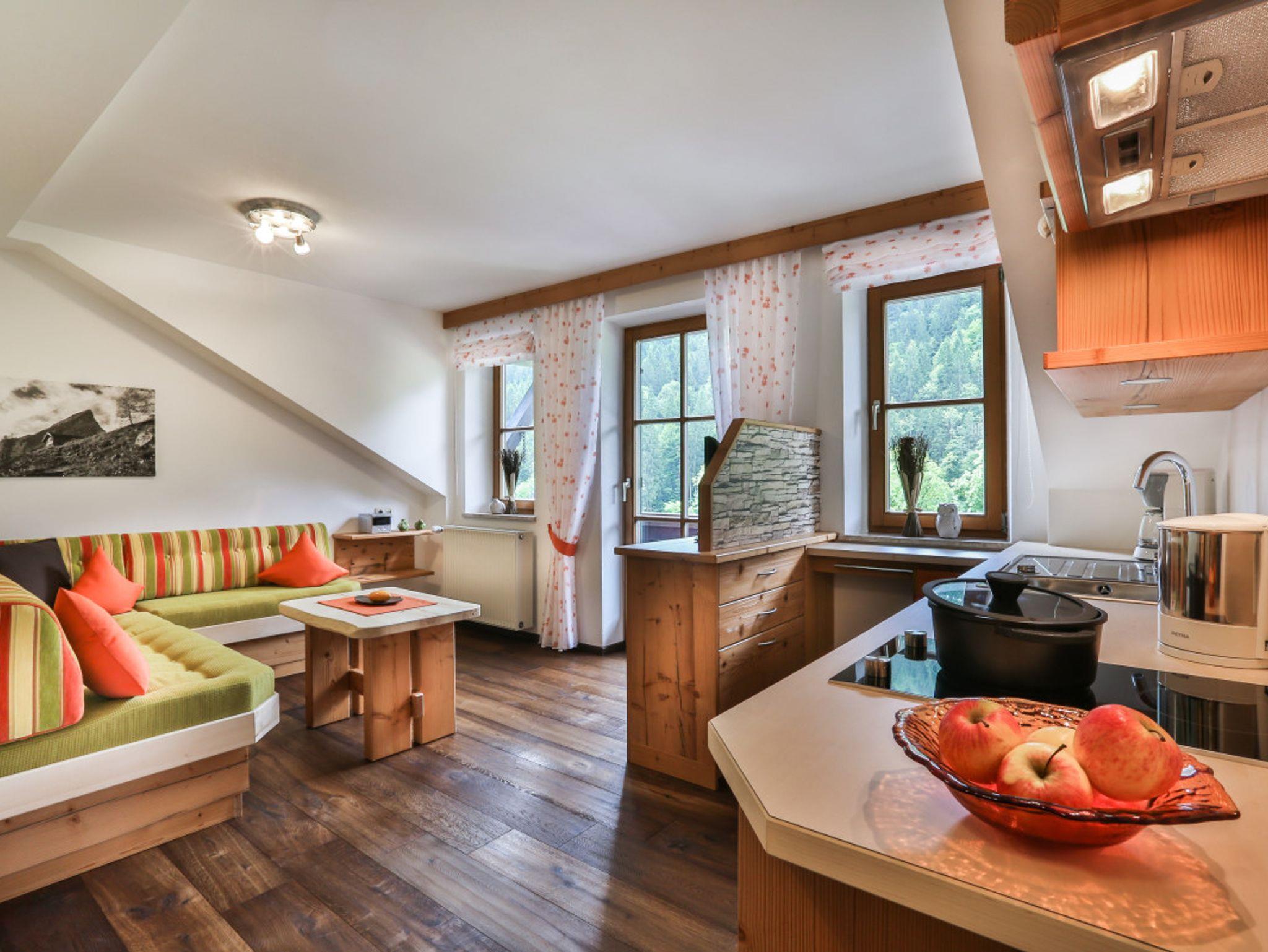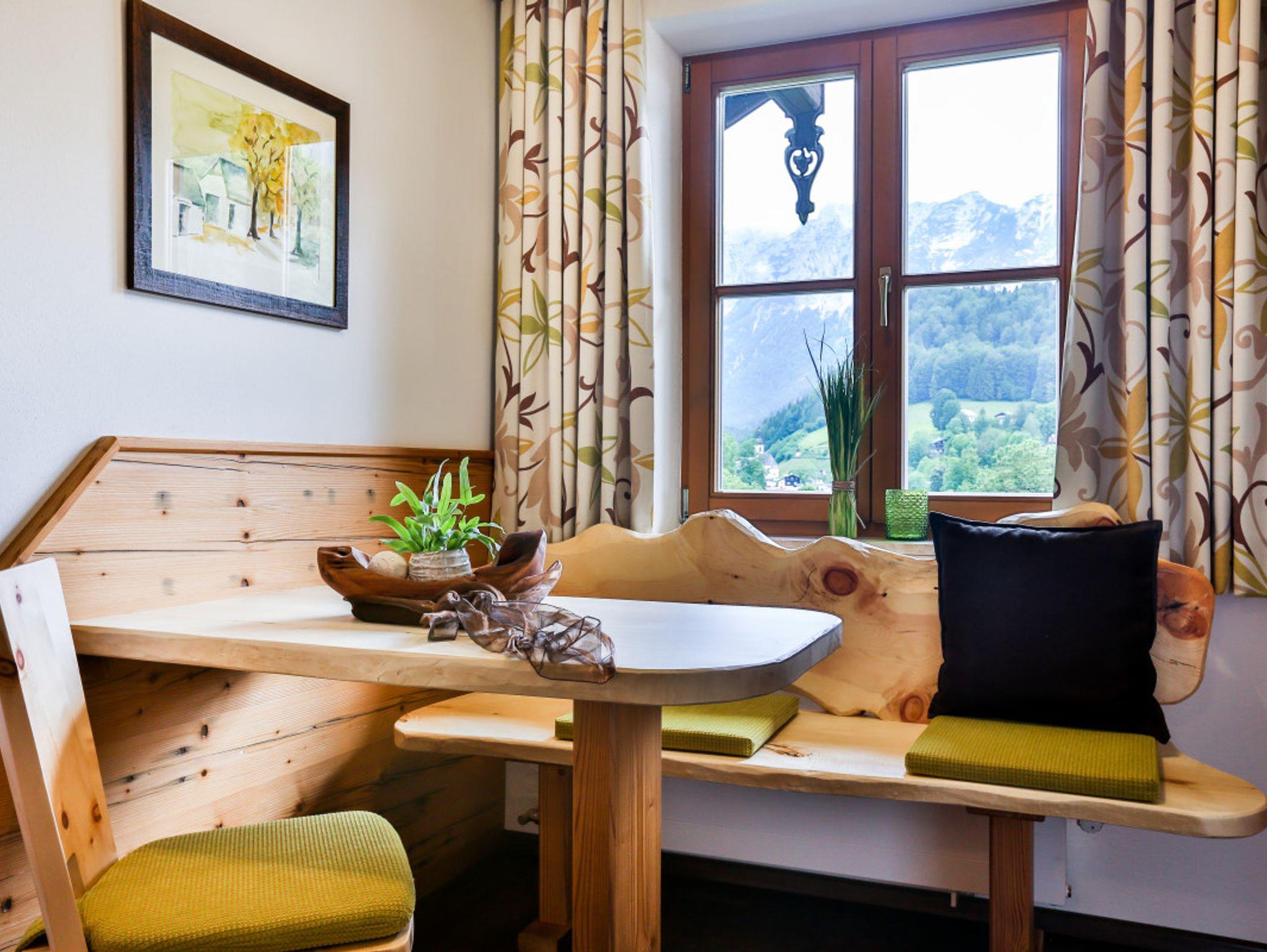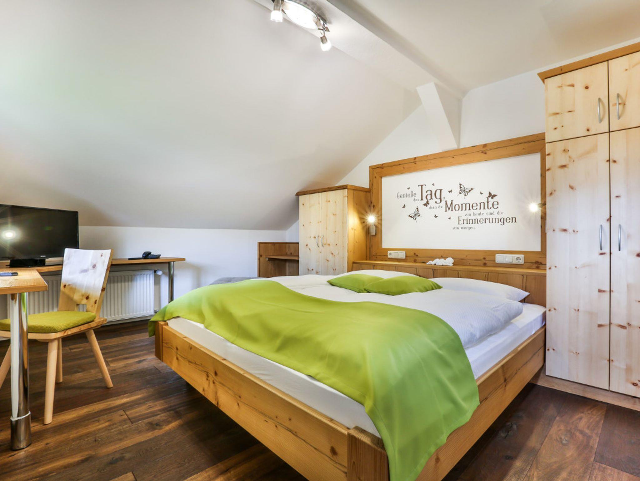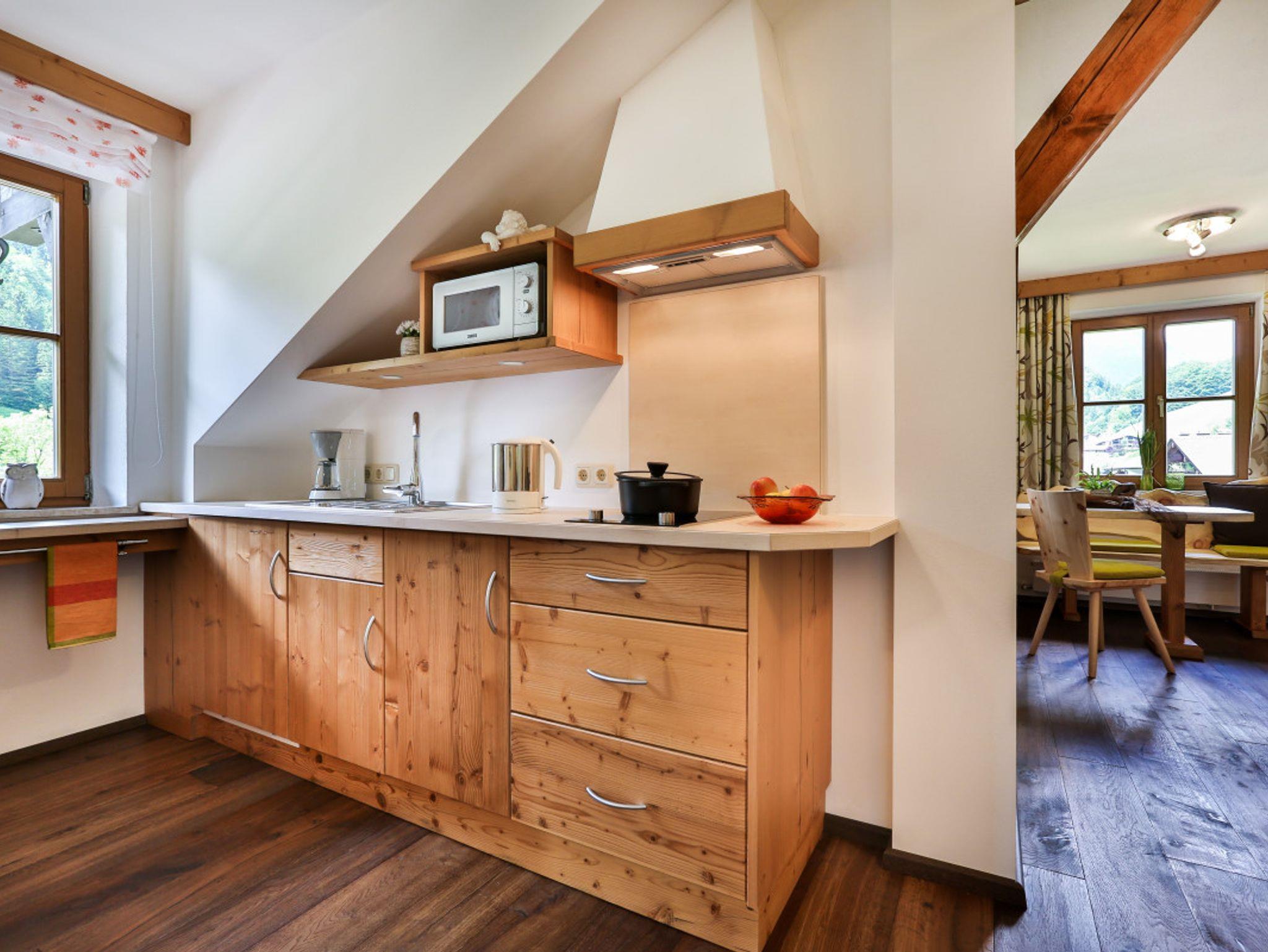 Unsere neue Ferienwohnung, gefertigt in unserer Schreinerei, zeichnen sich aus durch eineKombination aus persönlicher Note, Liebe zum Detail und dem ländlich-kreativem Design,die Ihrem Urlaub das gewisse Etwas geben.Wir können Ihnen exklusive und gemütliche Zwei-Zimmer-Suiten in gehobenem Stil anbieten.Stilvolle alpine Wohlfühlwohnung in Fichte-Altholz, kombiniert mit Zirbe und Echtholz-Eiche-Fußboden.Küche mit Spülmaschine, Kühlschrank, Microwelle, 2-Platten-Cerankochfeld, Kaffeemaschine und Wasserkocher.Gemütlicher Wohnbereich mit Sitzcouch und Tisch - Flachbildschirm mit SAT-TV, Telefon und Leselampe.Außerdem haben Sie eine kleine urige Sitzecke mit Esstisch. Das Schlafzimmer hat Betten in der Größe 180x200cm,mit SAT-TV, Kofferablage und Zimmersafe. Der Wohn- und Schlafbereich ist durch ein Glas-Schiebetürelement mitVerdunkelungsjalousie abgetrennt.Das Badezimmer ist ausgestattet mit hochwertigen Materialien, verfügt über einen Granit-Waschtisch mit viel Ablagefläche,einen großen Duschbereich, WC, Fön, Kosmetikspiegel und Handtuchtrockner sowie Kosmetikprodukte.Durch ein Glaselement zum Wohnzimmer haben Sie auch im Bad natürliches Tageslicht.Sie wohnen im 3. Stock und haben einen eigenen Süd- und Westbalkon mit einemPanoramablick auf den Steinberg und die Reiteralpe.