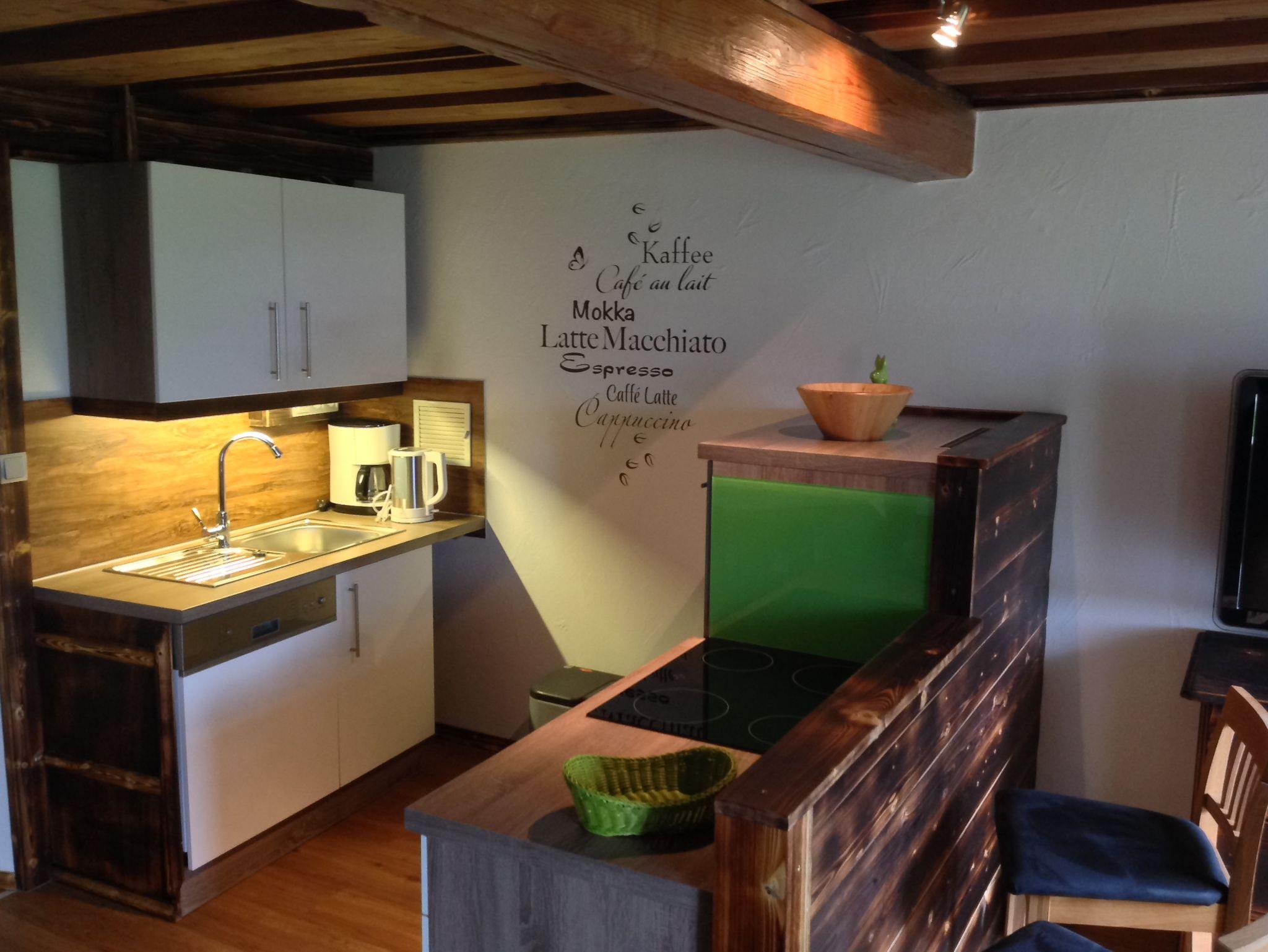 Urig und liebevoll mit altem Holz (Schreinerarbeiten) renovierte und neu gestaltete Nichtraucher-Ferienwohnung. Die großzügige Wohnung inklusive W-LAN, verfügt über 2 Schlafzimmer, einen Wohnbereich mit Sitzecke, TV und Safe, Essecke und offener Küche, Dusche/WC und Diele. Die gesamte Wohnung ist mit allergikerfreundlichen Fußböden ausgestattet und vom Balkon aus haben Sie einen herrlichen Blick auf das gesamte Bergpanorama.