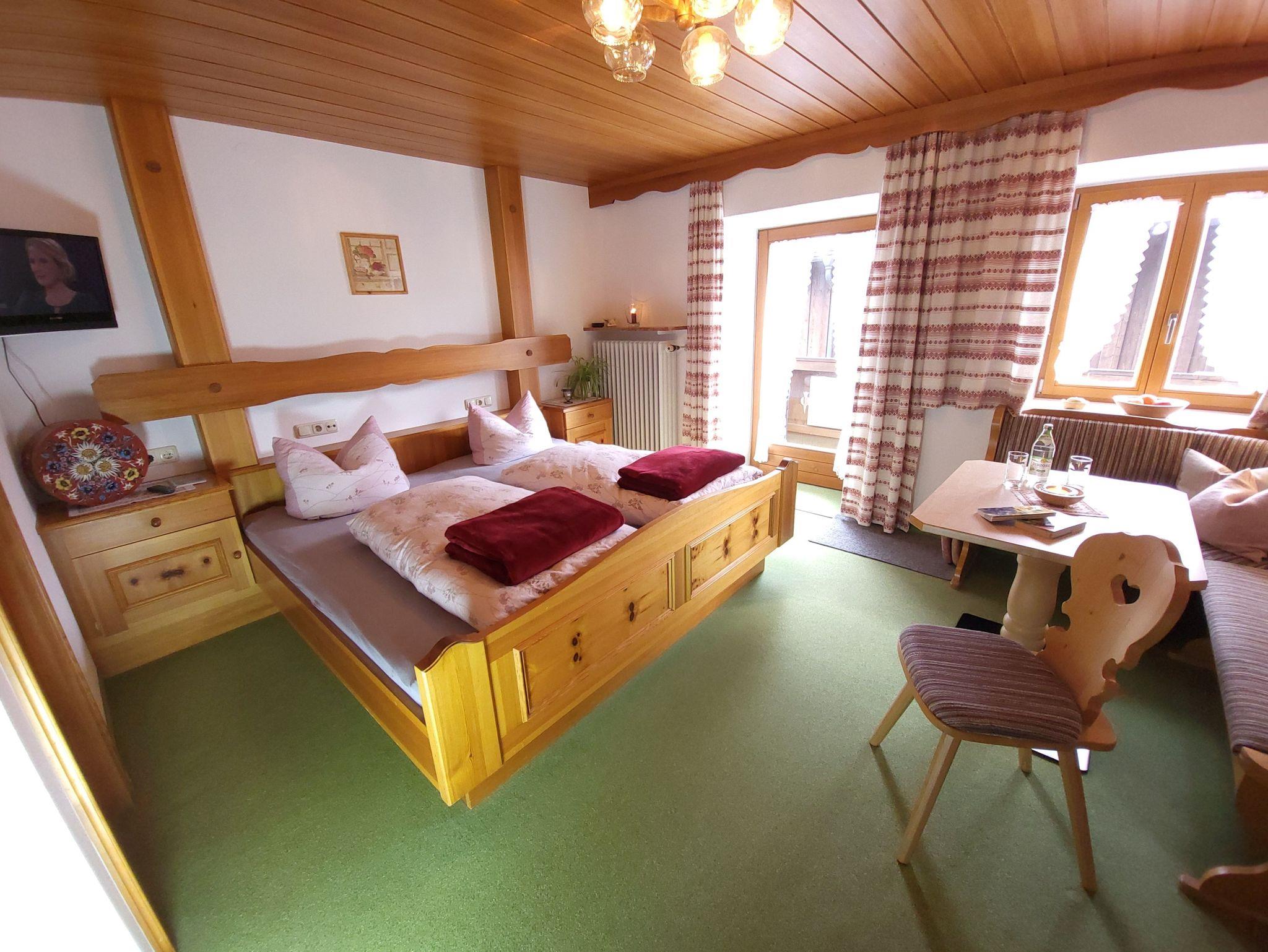 Unsere gemütlich eingerichteten Zimmer mit Dusche, WC und Balkon bieten einen herrlichen Blick auf die umliegende Bergwelt.Zum Frühstücksbuffet erwartet Sie ein reichhaltiges Angebot, wobei wir auch gerne auf Sonderwünsche eingehen.Zimmer 2: 21 qm, im 1. Stock gelegen, Balkon nach Osten mit herrlichem Bergblick.Teppichboden, Sitzecke mit Eckbank und Tisch.