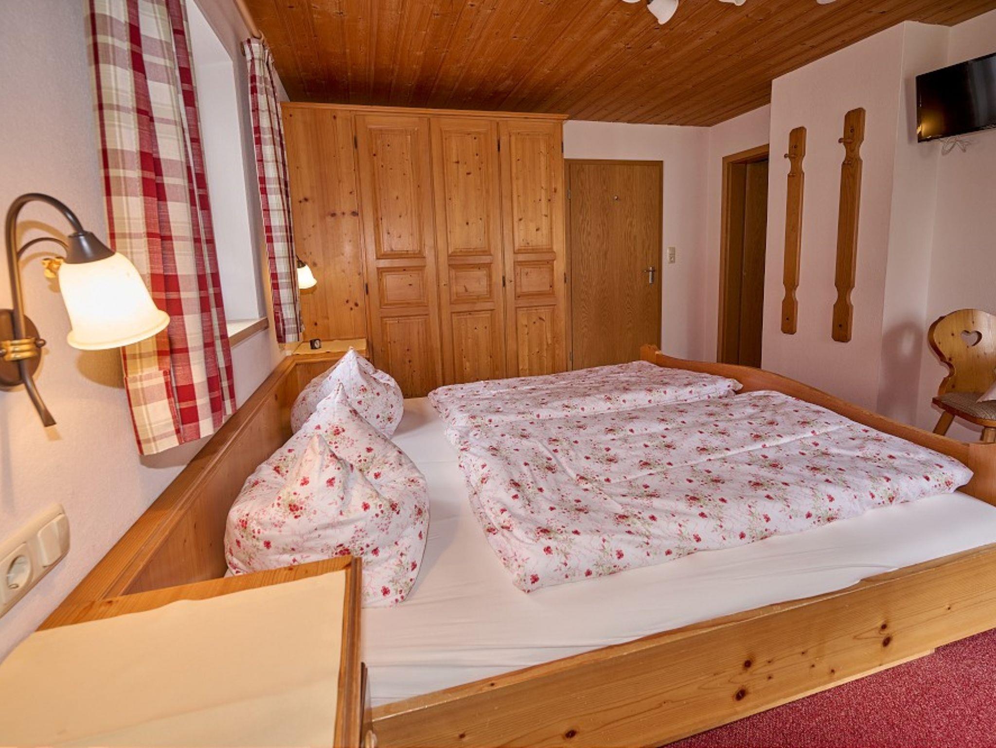 Gepflegtes, freundliches Gästezimmer für 2 Personen mit Dusche und Balkon in sonniger Lage mit herrlichem Bergblick.