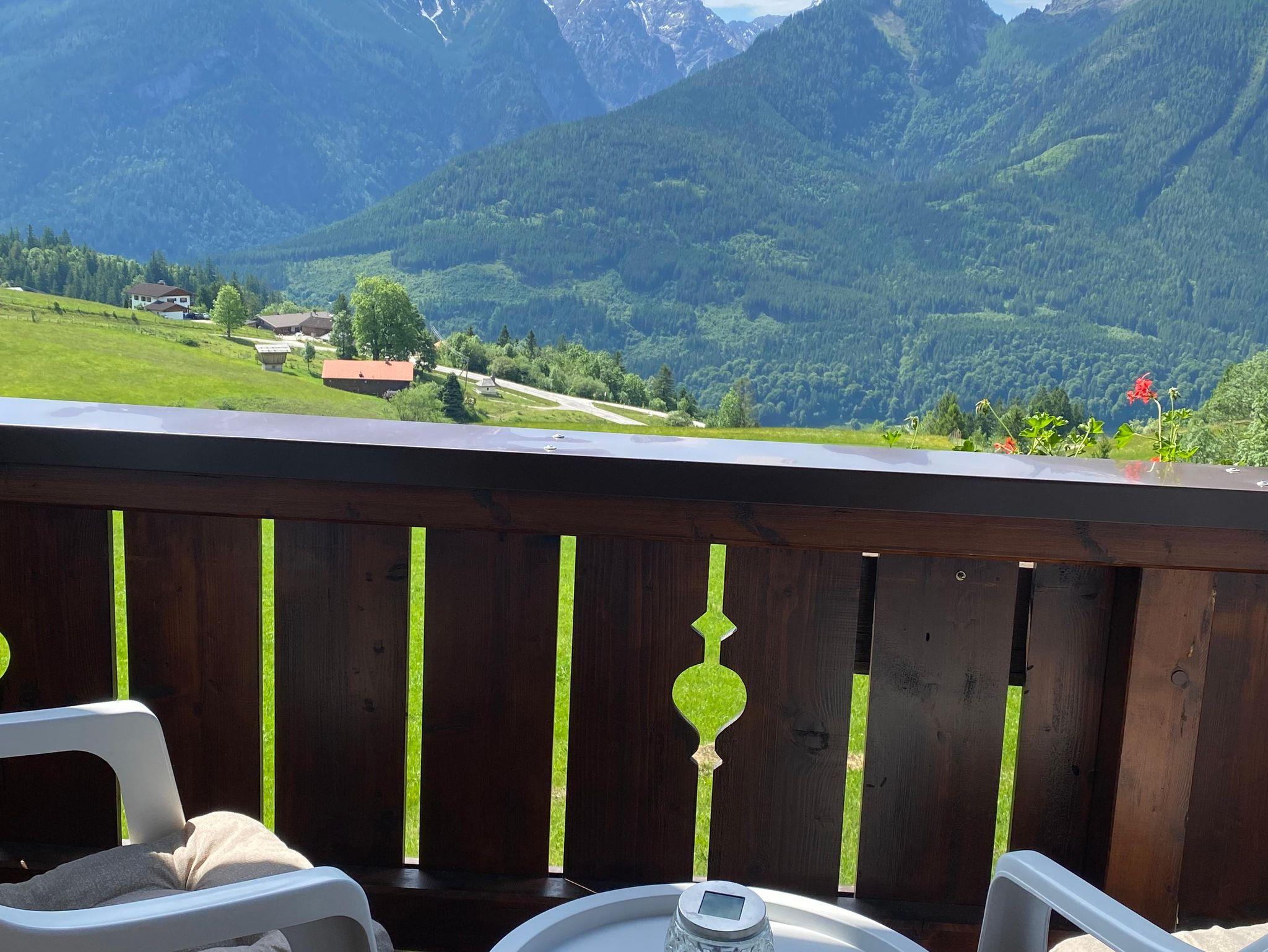 Unsere Ferienwohnung bietet Ihnen vom Südbalkon aus einen Traumblick auf das gesamten Bergpanorama. Sie ist aufgeteilt in Wohnzimmer, Wohnküche, 2 Doppelzimmer und ein Einzelzimmer, Flur und Dusche/WC. Unsere Ferienwohnung ist eine Nichtraucherwohnung. Gerne können Sie auf dem Balkon Ihre Zigarette genießen. Genießen Sie den fantastischen Ausblick und die herrliche Ruhe fernab der Straße. Die Wohnung hat einen separaten Eingang über eine Außentreppe. W-LAN kostenlos verfügbar.