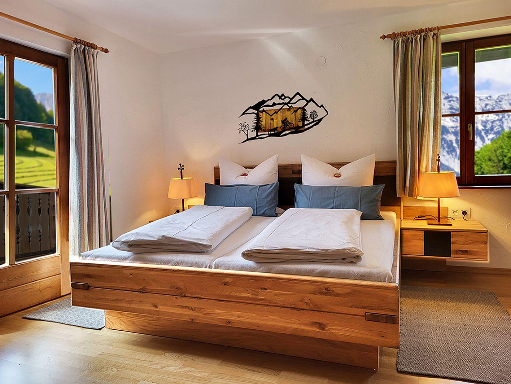 Ruhige, gemütliche Ferienwohnung zu Füßen des Watzmanns und Hochkalters am Eingang zur Wimbachklamm und ins Wimbachtal. Großer Balkon, Südlage, getrenntes Schlafzimmer, neue, vollausgestattete Wohnküche mit offenem Durchgang zum Wohnzimmer. Liegewiese, Parkplatz. Idealer Ausgangspunkt für die schönsten Wanderungen und Touren im Nationalpark.Nichtraucherwohnung, gerne können Sie Ihre Zigarette auf dem Balkon genießen.