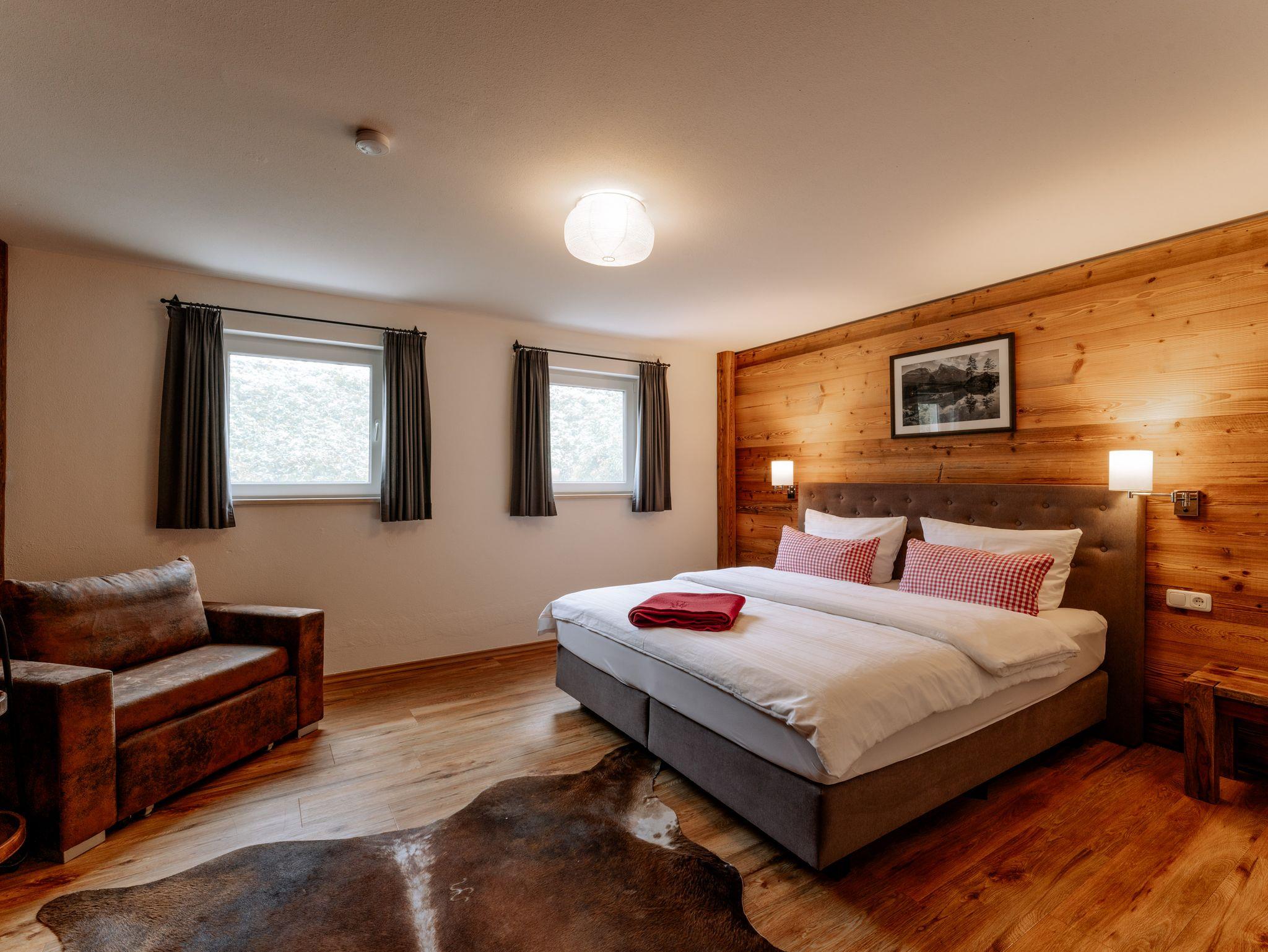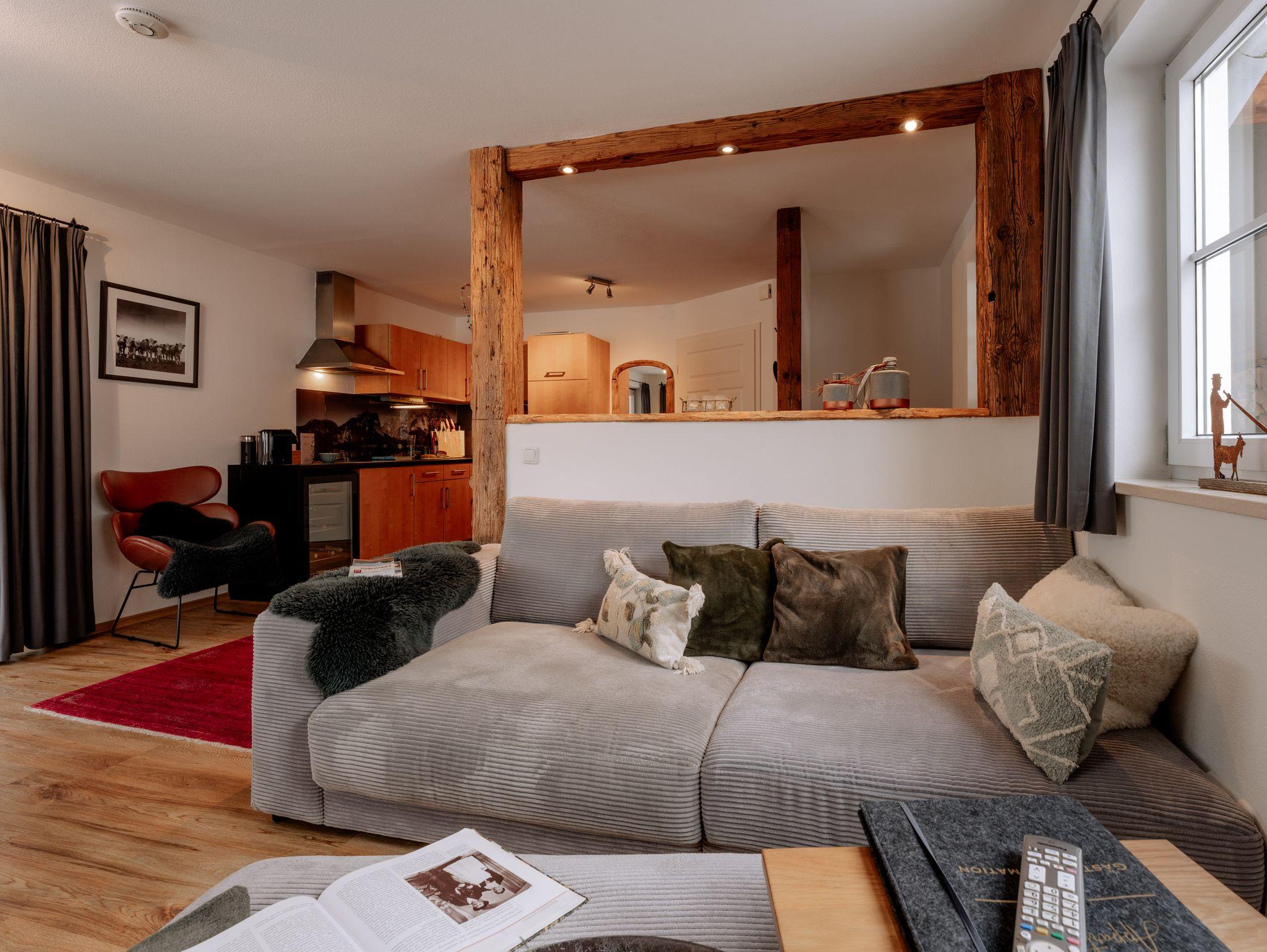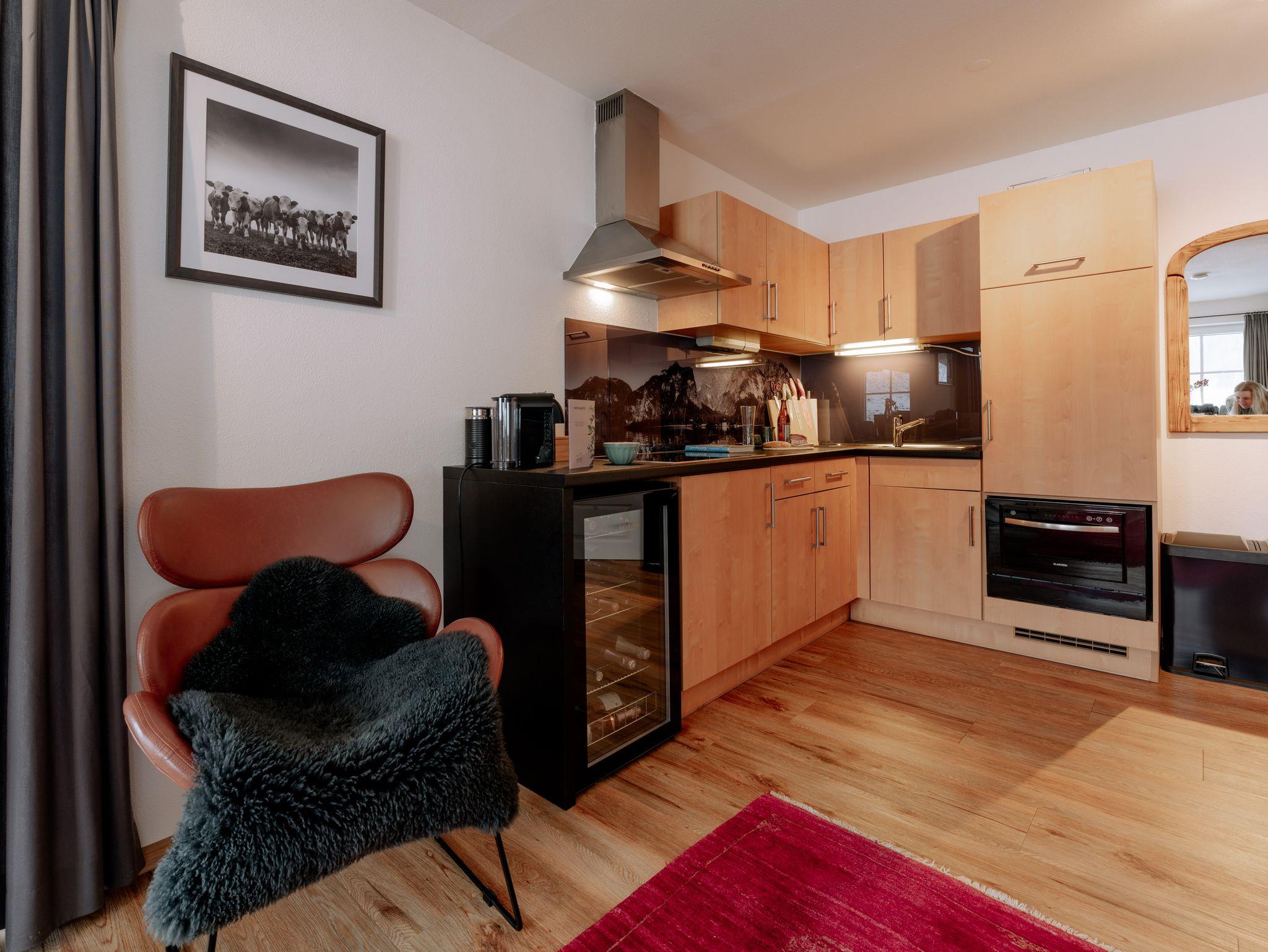 Ihr Feriendomizil ist im Stil eines Chalets auf zwei Ebenen luxuriös mit liebevollen Details eingerichtet. Der offene Wohnbereich mit hochwertiger Einrichtung und Teilen aus heimischem Altholz, integriertem TV/Flatscreen, kostenfreiem W-LAN sowie einer großzügigen Küchenecke bietet viel Raum für Entspannung. Genießen Sie ein Glas Wein aus dem klimatisierten Weinschrank oder zaubern Sie in Ihrer Küche feine Speisen. Wenn Sie Anhänger der Nespresso Grands Crus sind, müssen Sie während Ihres Urlaubs nicht auf den besonderen Kaffeegenuss verzichten. Der separate Schlafbereich lädt zum Träumen in einem luxuriösen Boxspringbett oder zum entspannten Fernsehabend mit integriertem TV Flatcreen ein. Für eine 3. Person steht ein bequemer Schlafsessel zur Verfügung. Im angrenzenden großzügigen Badezimmer mit neuer begehbarer Dusche/WC ist Wohlfühlen angesagt. Bettwäsche und Handtücher sind kostenfrei. Auf Wunsch Bettwäschen-Wechsel 35,00 € zusätzlich (2 Garnituren).