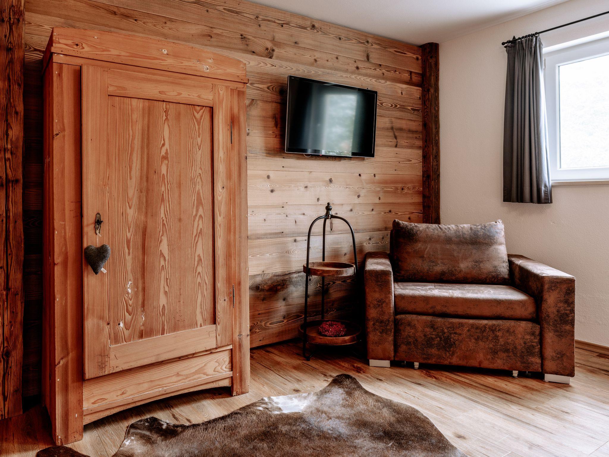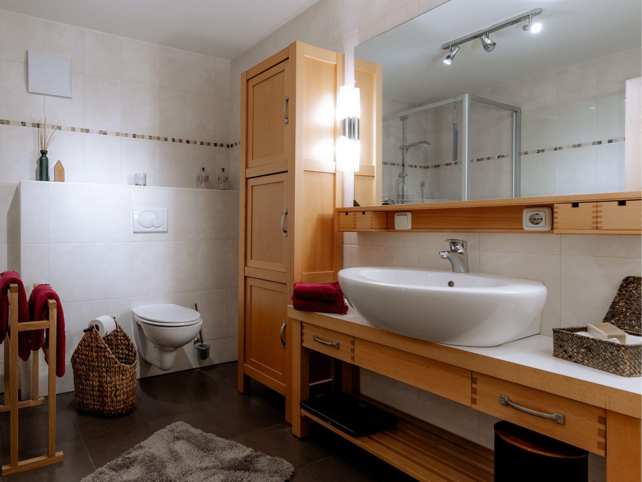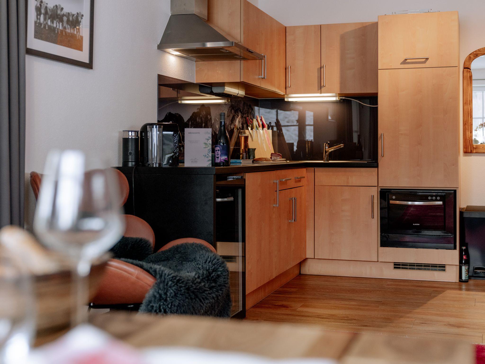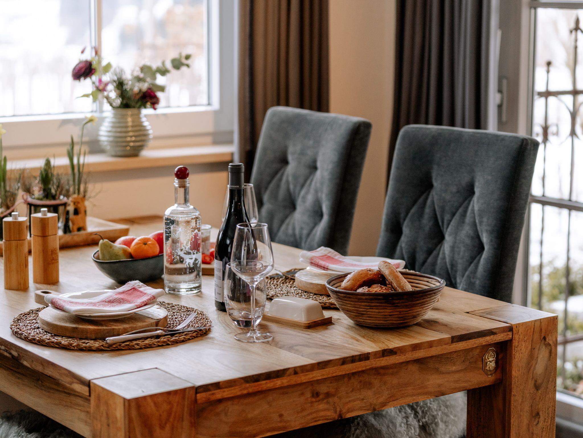 Ihr Feriendomizil ist im Stil eines Chalets auf zwei Ebenen luxuriös mit liebevollen Details eingerichtet. Der offene Wohnbereich mit hochwertiger Einrichtung und Teilen aus heimischem Altholz, integriertem TV/Flatscreen, kostenfreiem W-LAN sowie einer großzügigen Küchenecke bietet viel Raum für Entspannung. Genießen Sie ein Glas Wein aus dem klimatisierten Weinschrank oder zaubern Sie in Ihrer Küche feine Speisen. Wenn Sie Anhänger der Nespresso Grands Crus sind, müssen Sie während Ihres Urlaubs nicht auf den besonderen Kaffeegenuss verzichten. Der separate Schlafbereich lädt zum Träumen in einem luxuriösen Boxspringbett oder zum entspannten Fernsehabend mit integriertem TV Flatcreen ein. Für eine 3. Person steht ein bequemer Schlafsessel zur Verfügung. Im angrenzenden großzügigen Badezimmer mit neuer begehbarer Dusche/WC ist Wohlfühlen angesagt. Bettwäsche und Handtücher sind kostenfrei. Auf Wunsch Bettwäschen-Wechsel 35,00 € zusätzlich (2 Garnituren).