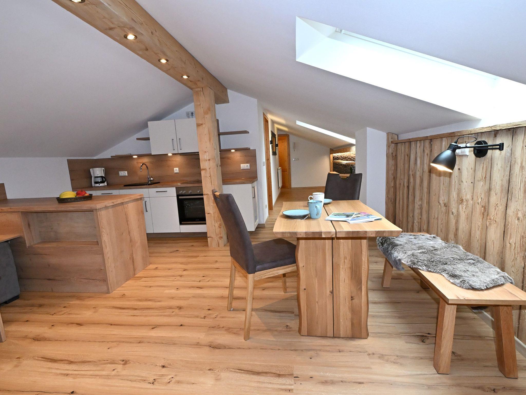 Sehr gemütliche FeWo im Dachgeschoss komplett renoviert im Frühjahr 2022 mit massivem Altholz ausgestattet. W- LAN incl. Wischbarer Boden in der ganzen Wohnung. Jeder Raum mit Dachfenster und Rollläden versehen. Südbalkon mit herrlichem Blick auf Watzmann, Steinberg und Reiteralpe- gemütliche Sitzecke. FeWo ausgestattet mit großem Fernseher, Spülmaschine, 4 Plattenherd, Backofen, Kühlschrank mit Gefrierfach, etc.