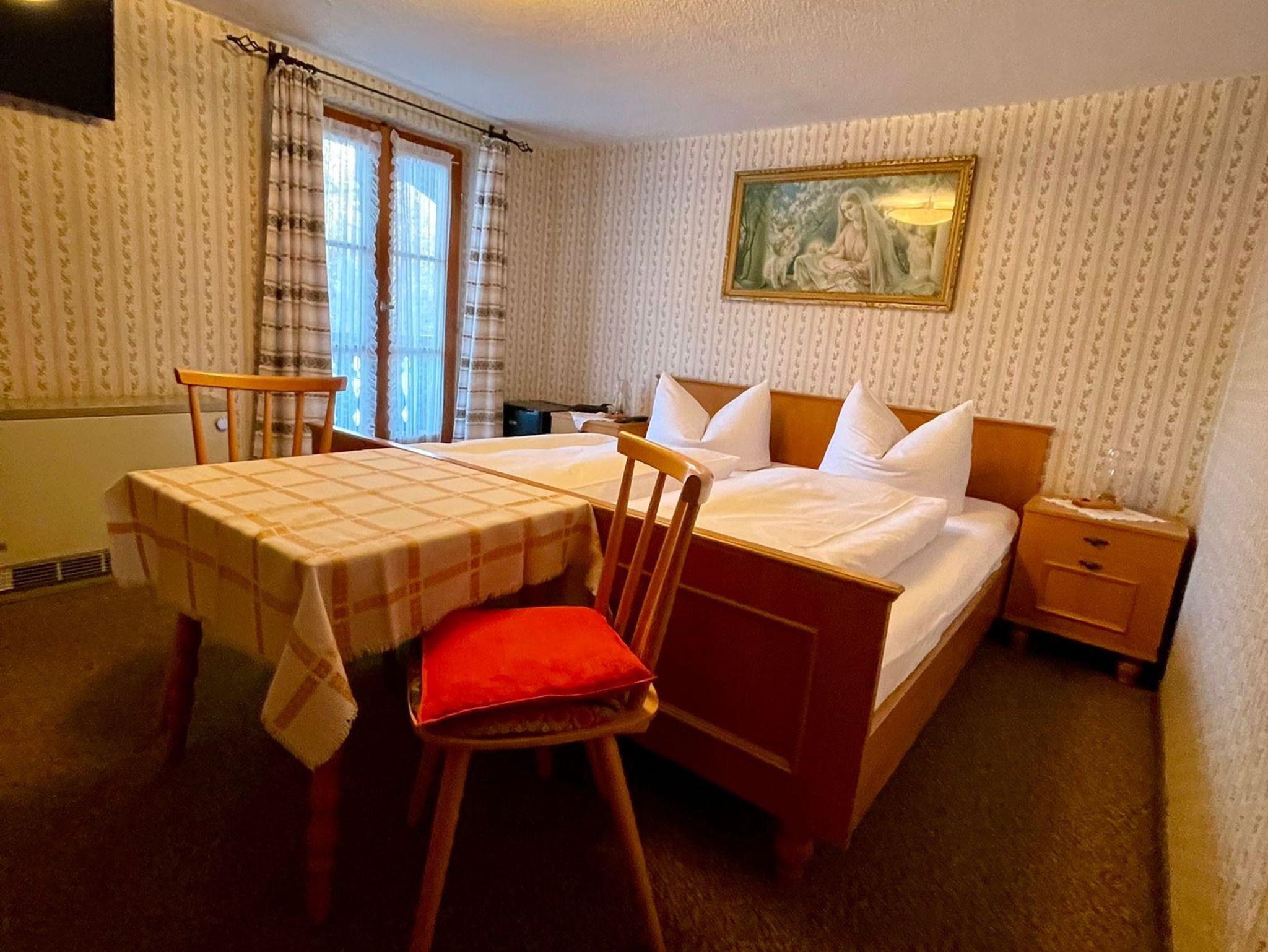 Unser gemütliches Doppelzimmer im Dachgeschoss bietet Platz für bis zu zwei Personen und ist der ideale Rückzugsort nach einem erlebnisreichen Tag in der Natur. Das Zimmer überzeugt durch seine authentische, bayerische Atmosphäre und sorgt mit liebevollen Details für eine behagliche Stimmung.