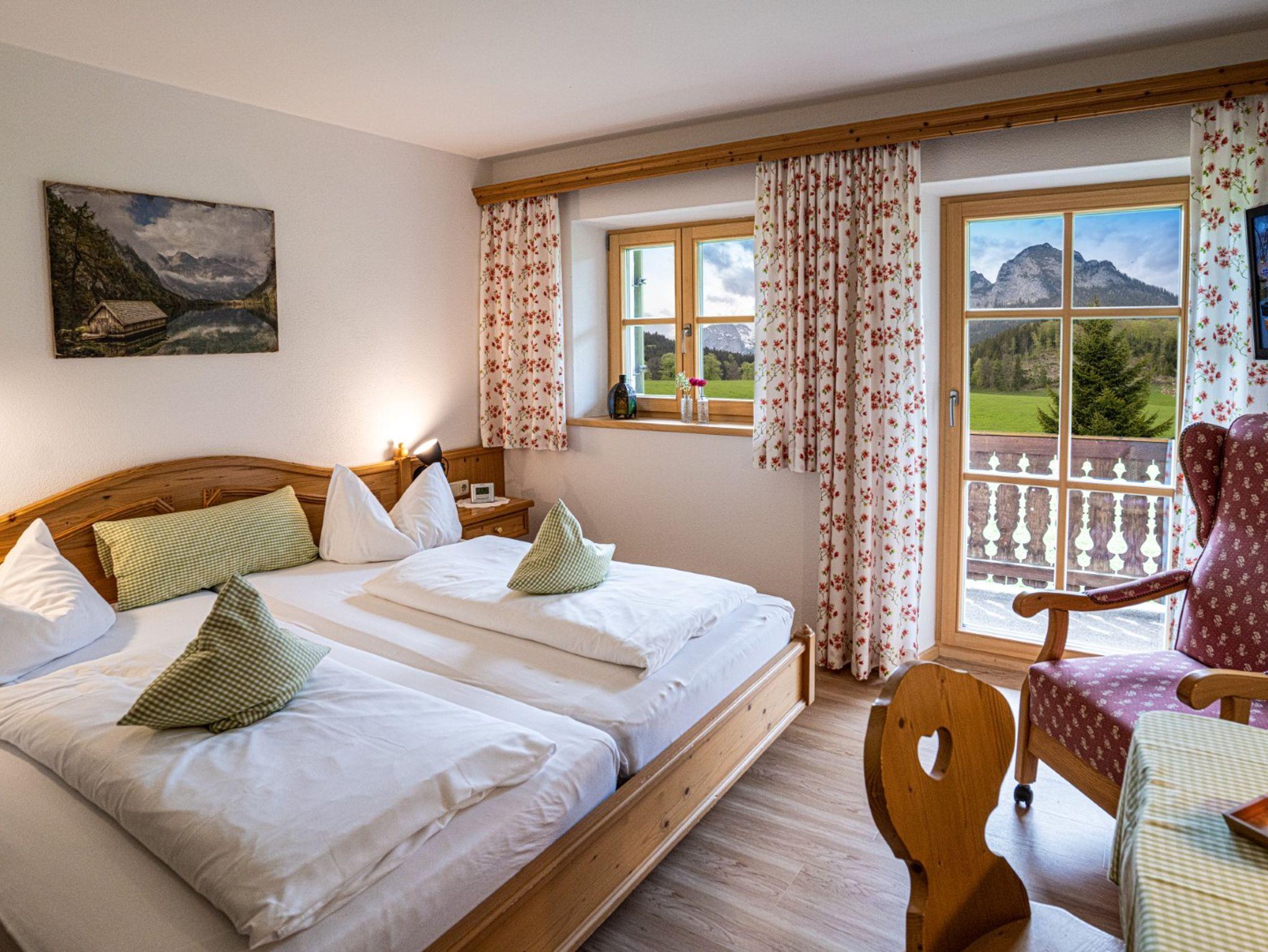 XSS-Filterion style=height: auto;>Helles und im ländlich-modernen Stil eingerichtetes Doppelzimmer mit Balkon und traumhaftem Blick auf die Reiteralpe. Unser Biosphärenfrühstück ist inclusive und lässt Sie mit regionalen und liebevoll selbstgemachten Produkten perfekt den Urlaubstag beginnen. Ein Gäste- und Getränkekühlschrank steht Ihnen außerhalb des Zimmers zur Verfügung.