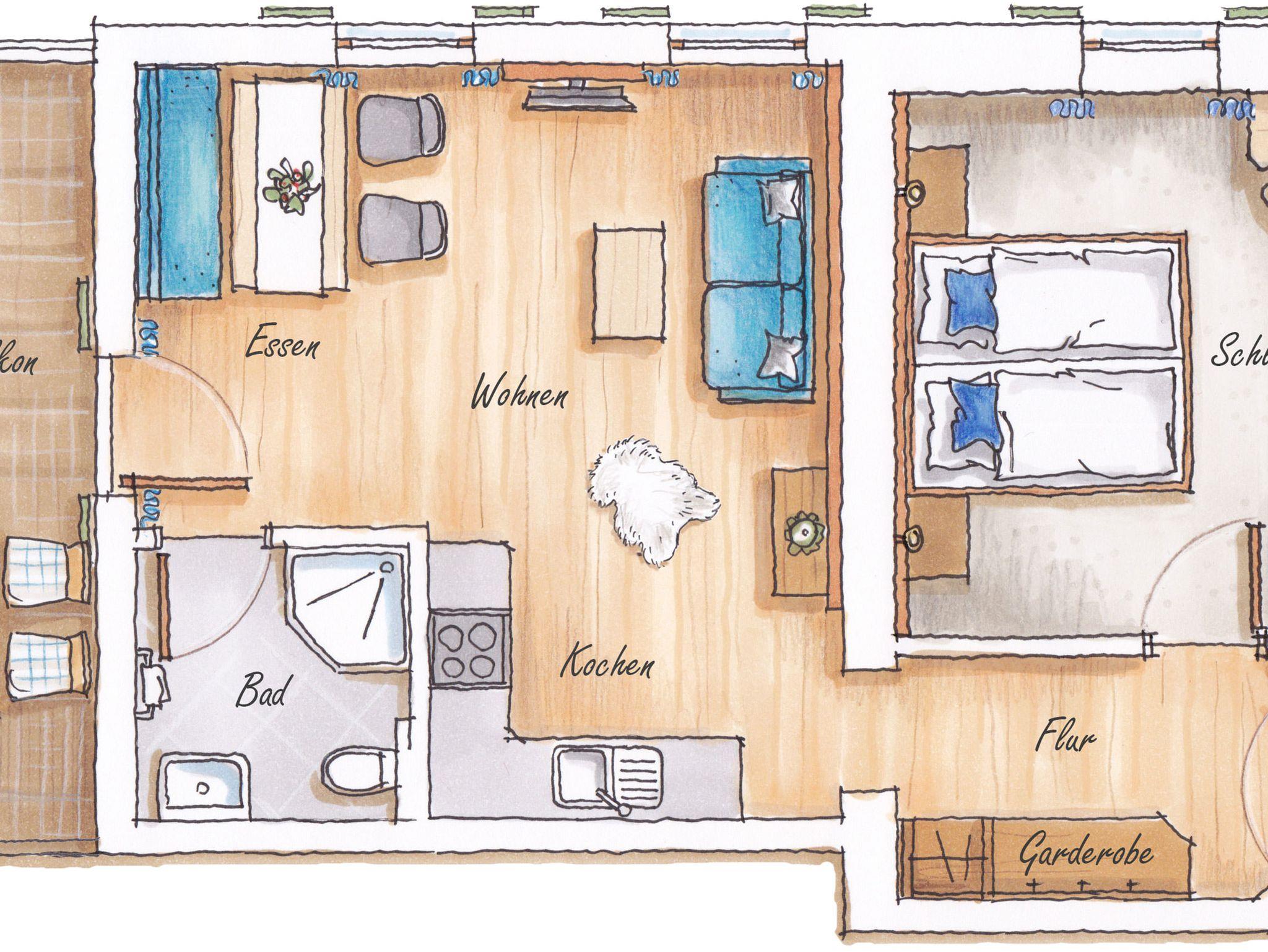 Fühlen Sie sich wie zu Hause in unserer neuen, gemütlichen Ferienwohnung. Diese hat ca. 65 qm. Uns liegt es am Herzen, hauptsächlich Naturmaterialien wie Altholz von eigener Alm, Naturholzböden, Leinen und Filz zu verwenden. Im Wohnzimmer befindet sich ein Flat Screen TV, Stereoanlage, DVD-Player, große Schlafcouch für 2 Personen und ein Zugang zum eigenen Balkon.