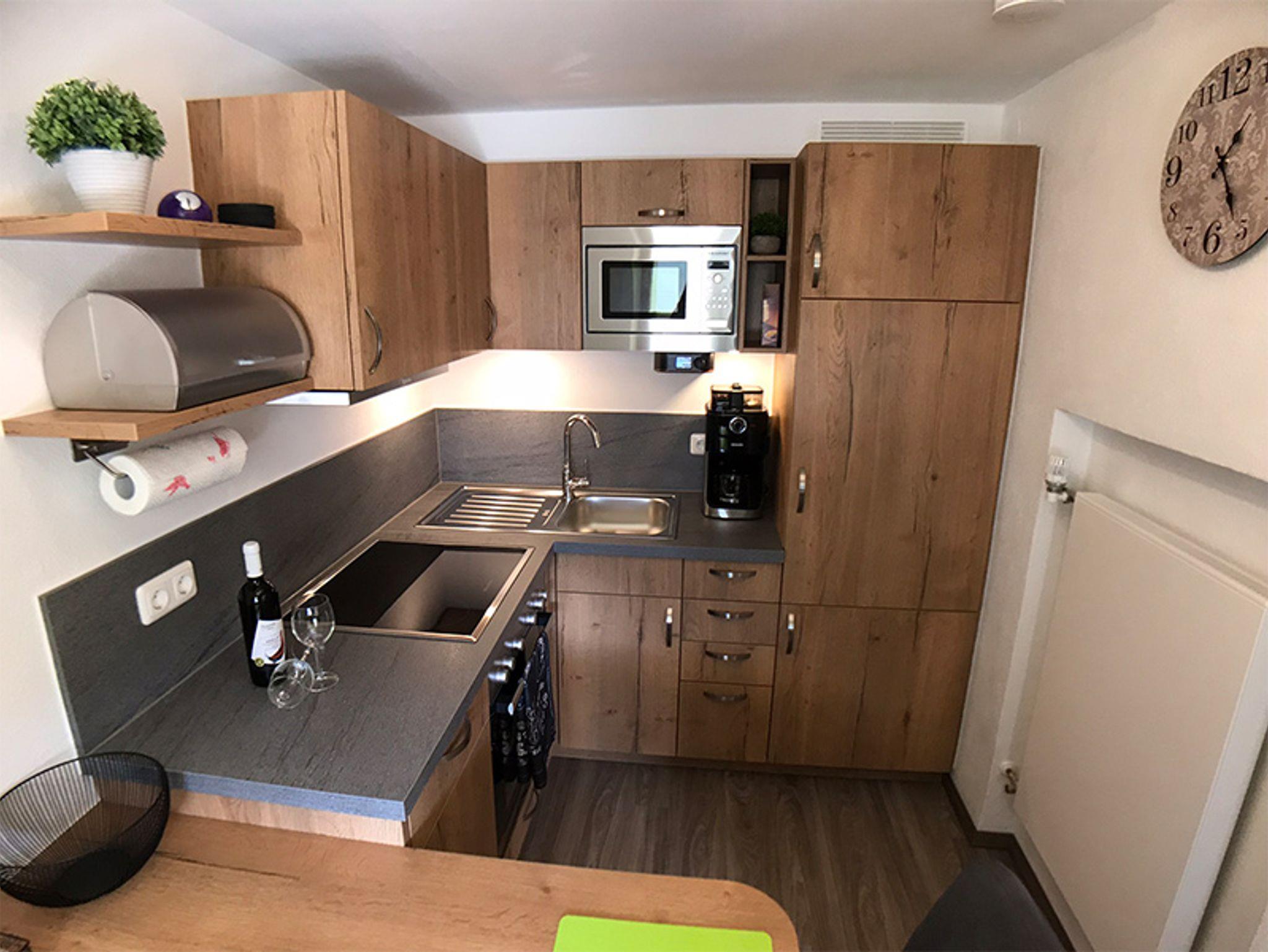Unser neu renoviertes Nichtraucher Apartment befindet sich im Erdgeschoss und verfügt über einen Wohn /Schlafraum mit Doppelbett und Schlafcouch, einen Flachbild-TV und eine voll ausgestattete Küche mit einem Geschirrspüler, Backofen, Mikrowelle und Internet Radio.Unsere Ferienwohnung bietet zudem einen Waschtrockner sowie ein Bad mit Dusche und WC.Das Apartment verfügt über kleine Terrasse mit Bergblick vor der Ferienwohnung. Mehrere Sitzgelegenheiten sind vorhanden.