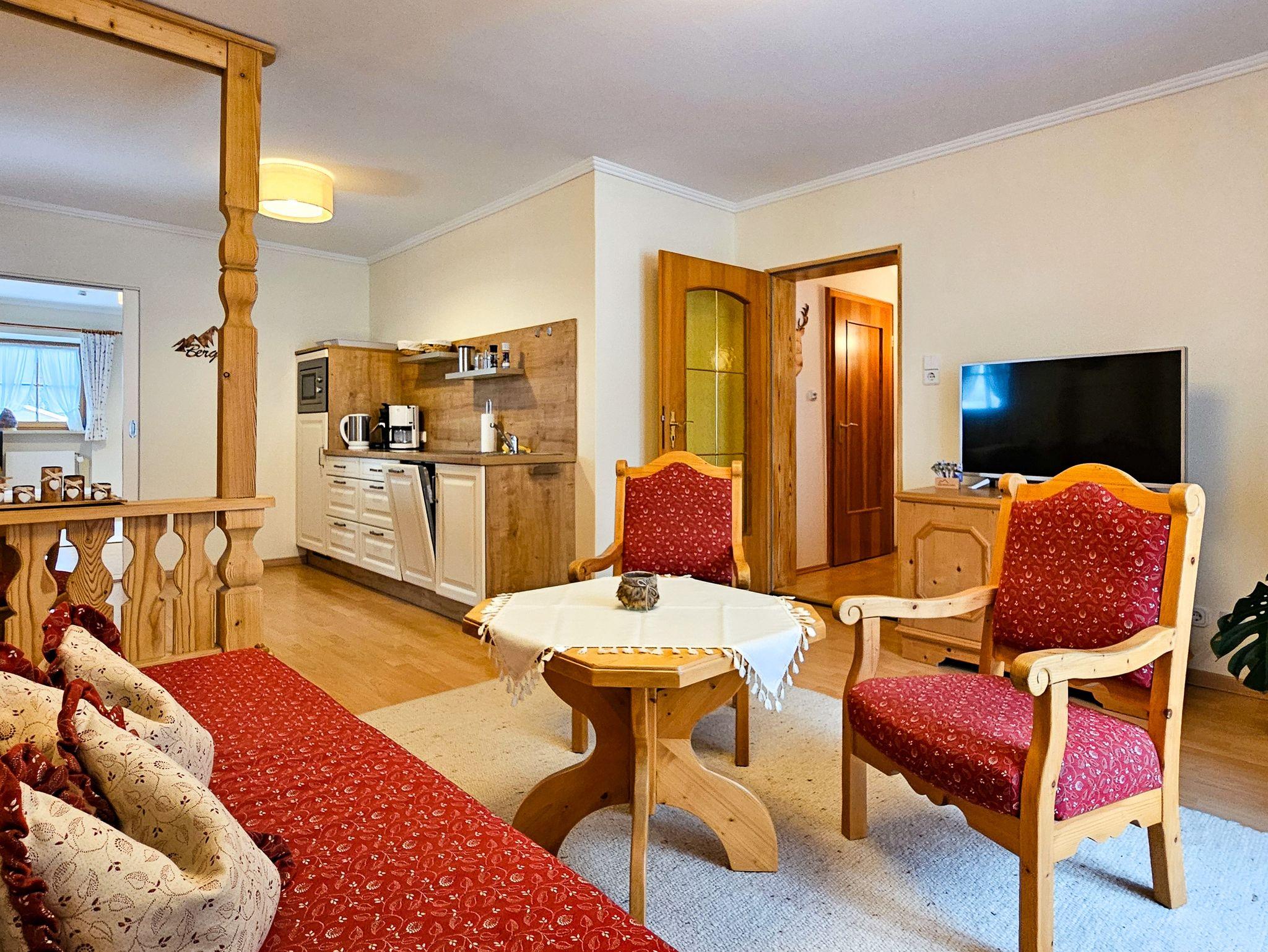 Gästehaus Oslhof Ferienwohnungen, Ferienwohnung Reiteralpe, 1-2 Personen, 56 qm, Balkon, Wohnzimmer, Küche mit Geschirrspüler, Schlafzimmer, Balkon, Ost-West