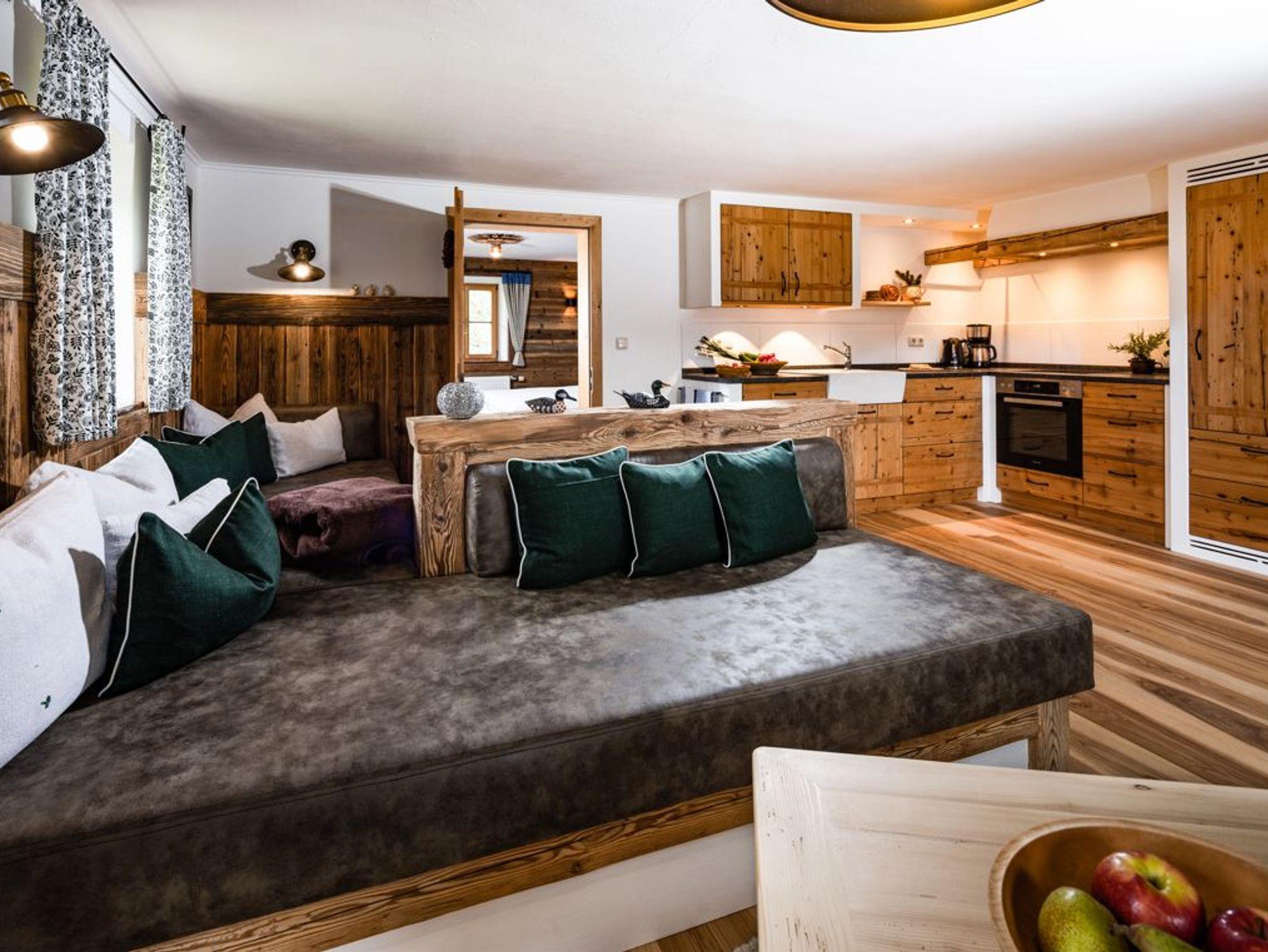 Der Beda besticht durch seine klare, offene Form und den natürlichen Materialien der traditionellen Bauweise mit Altholz. Hier finden Sie einen Ort der Entspannung mit unvergesslichen Ausblicken in das umliegende Panorama des Nationalparks Ramsau. Der Beda ist auf 60 qm mit allen Komforts ausgestattet. Der offene Wohn-Essbereich mit Eckbank, Küche und gemütlichen Schlafdiwan garantiert eine gemütliche Zeit.