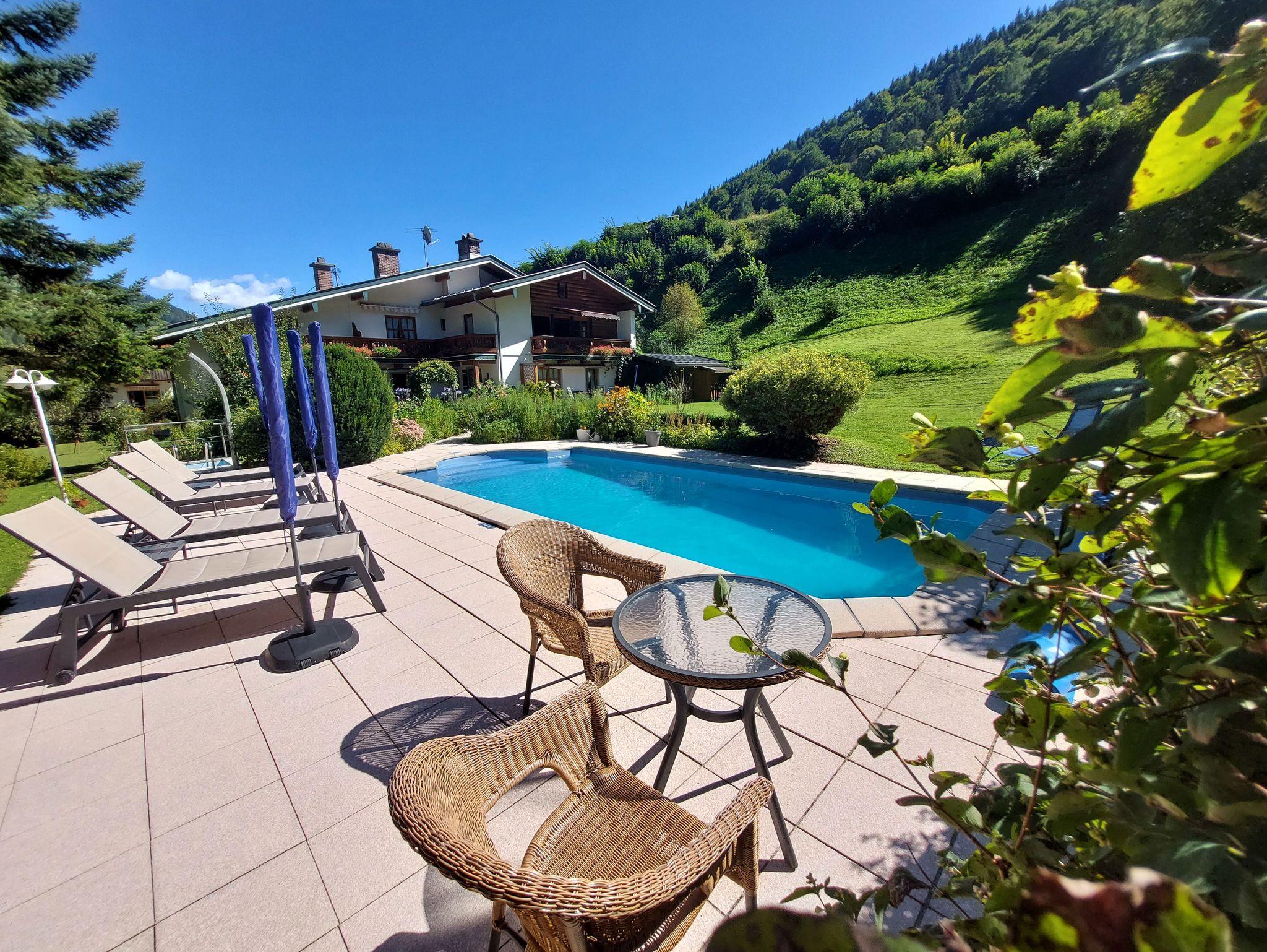Wir laden Sie recht herzlich in unser familiär geführtes Haus ein, es liegt sehr ruhig am Waldrand und doch in zentraler Ortslage mit herrlichem Blick auf die Ramsauer Berge. Unser Gästehaus bietet Ihnen helle, gemütliche, komfortable Ferienwohnungen, einen Fitnessraum mit Infrarot-Kabine, im Außenbereich Grill, Sauna, solarbeheizter Privat-Pool (geöffnet von Mitte Mai - Mitte September), Liegewiese und einen Spielplatz für Kinder.