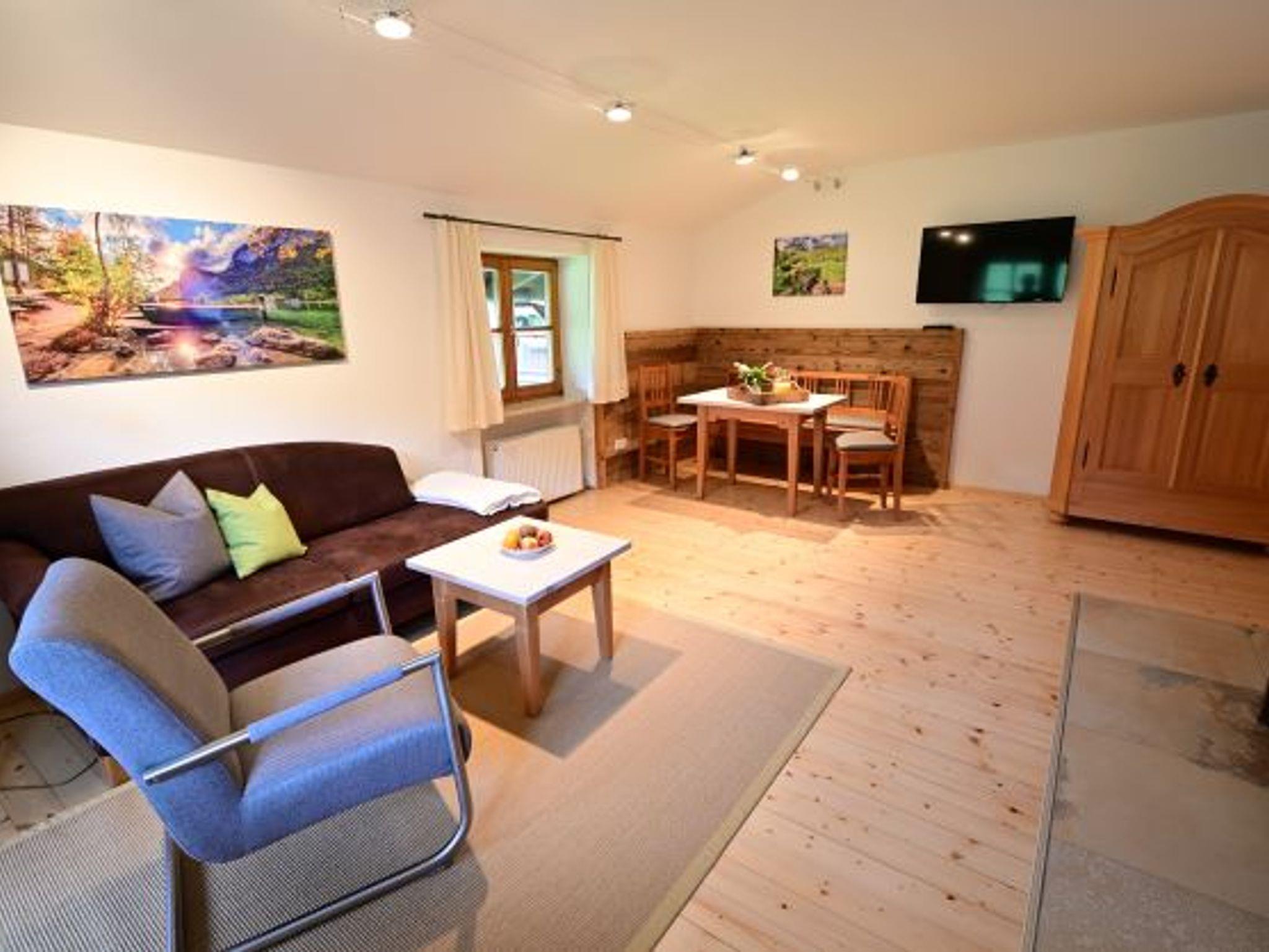 Ankommen - wohlfühlen - Urlaub genießen. Wir machen Ihren Urlaub in unseren Ferienwohnungen im Bergsteigerdorf Ramsau zum unvergesslichen Erlebnis. Unsere Unterkunft ist der ideale Ausgangspunkt für Wander-und Bergtouren im Nationalpark Berchtesgaden. Starten Sie Ihre Wandertouren direkt vor unserem Haus. Gemütliche und liebevoll eingerichtete Ferienwohnung im Haus Hochwies. ca. 40 qm - für 2 Personen - Nichtraucherwohnung - allergikerfreundliche Ausstattung - Südbalkon Wohnungsaufteilung: Wohnraum mit großzügiger Küche, Couch, Sessel, Lesestehlampe, große Essecke, separates Schlafzimmer mit Doppelbett (1,80m x 2,00m), hochwertiges Badezimmer (Dusche / WC), großer Südbalkon mit herrlichem Bergblick